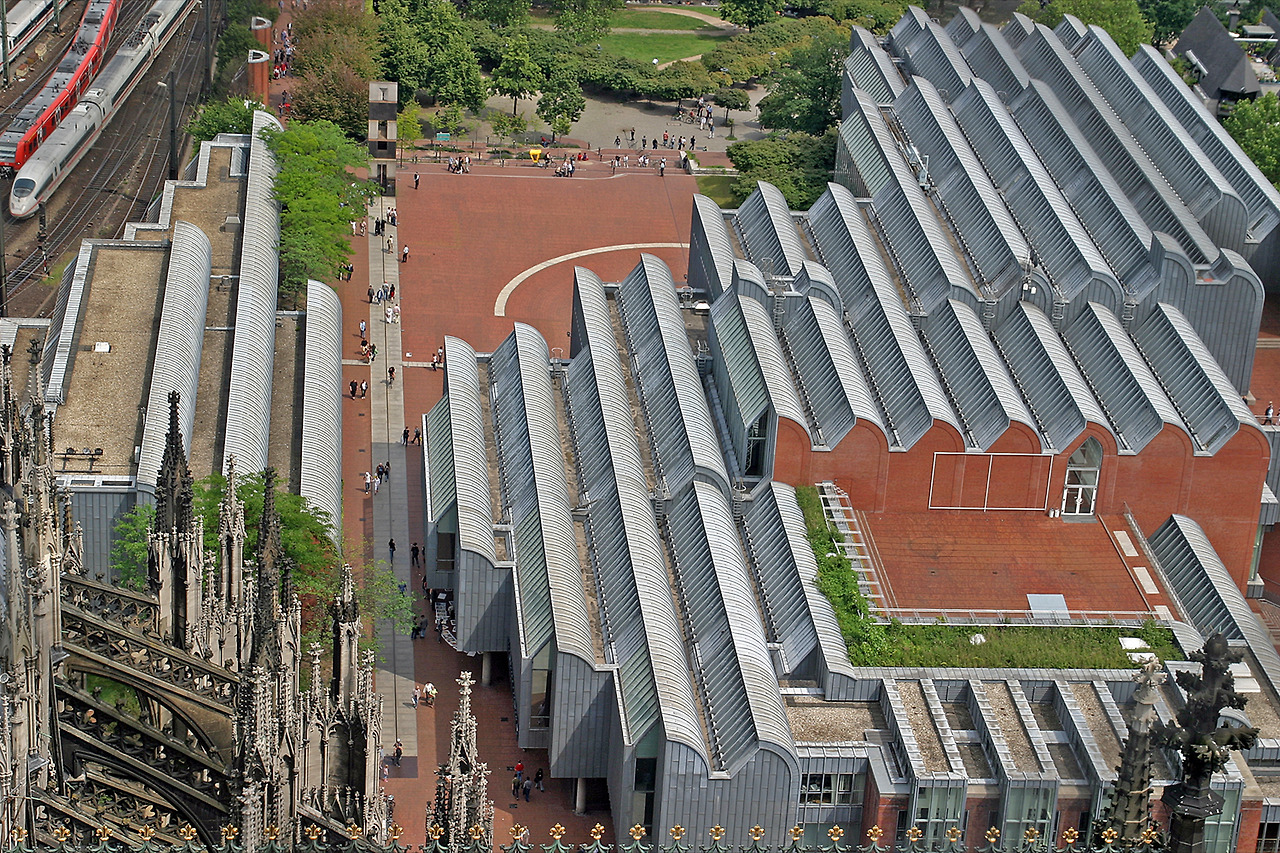익살스러운 아연 도금 패널과 붉은 벽돌 마감재의 채택 역시 이 커다란 볼륨의 미술관을 최대한 도시 경관과 어우러지도록 하기 위함일 것이다. 쾰른 중앙역에 내리면 가장 먼저 쾰른 대성당의 위용에 압도되고, 그다음으로 이 미술관의 공장스러운 외관에 사로잡히게 되는 것이다. 루드비히 미술관을 다루는 이유 역시 쾰른의 도심 중에서도 도심에 위치한 친근한 모습의 미술관이기 때문이다.