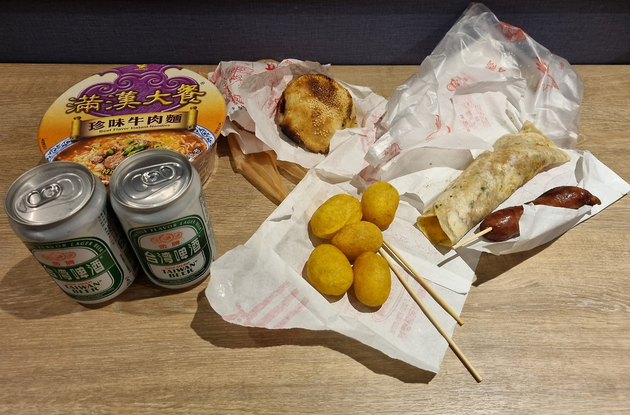 숙소로 돌아와서는 편의점에서 우육면 컵라면과 맥주를 샀다. "만한대찬"이라는 이름의 컵라면은 액상 스프에 고기도 함께 들어있어서 정말 맛있었다. 당연히 점심에 먹은 우육면과는 차이가 있었으나 나름의 매력이 있었다. 육류가 포함되어 있어 한국에 사갈 수 없다는 사실이 너무도 안타까웠다(대만은 육류 식품 반입ㆍ반출 금지). 식사를 마친 뒤 TV로 유튜브를 시청하며 대만에서의 즐거웠던 첫날을 마무리하였다.