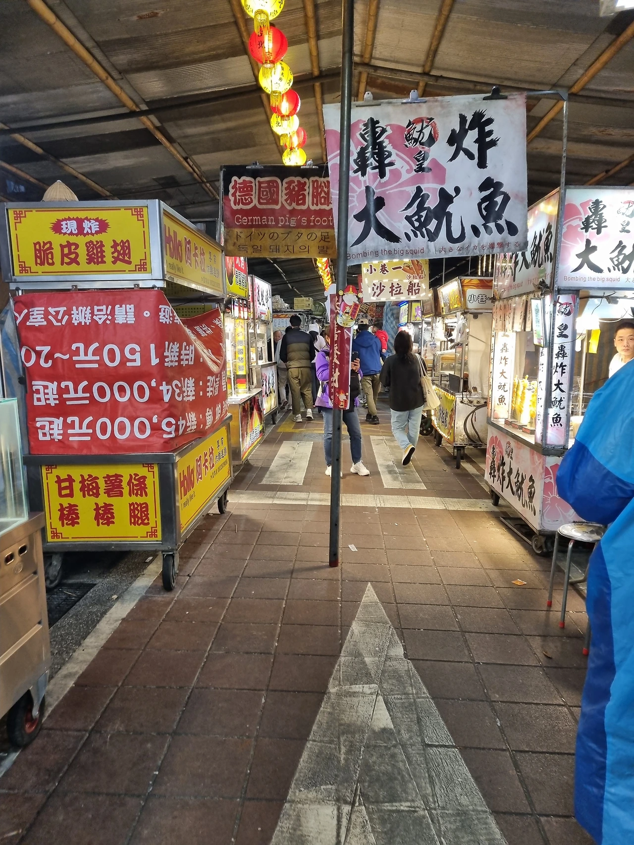 다음으로 대만의 상징과도 같은 야시장으로 향하였다. 막 영업을 시작하려는 시간에 가서 그랬는지 일부 가게들만 장사를 하고 있었다. 늦게 갔으면 더 제대로 즐길 수 있었겠으나 그냥 있는 대로 이것저것 구매하였다. 사진에 있는 고구마볼과 소세지 외에 파인애플 티도 한 잔 마셨다. 딱 복숭아맛 아이스티에서 복숭아를 파인애플로 바꾼 것이었는데, 파인애플 조각도 함께 들어있어서 추운 날씨에도 맛있었다.