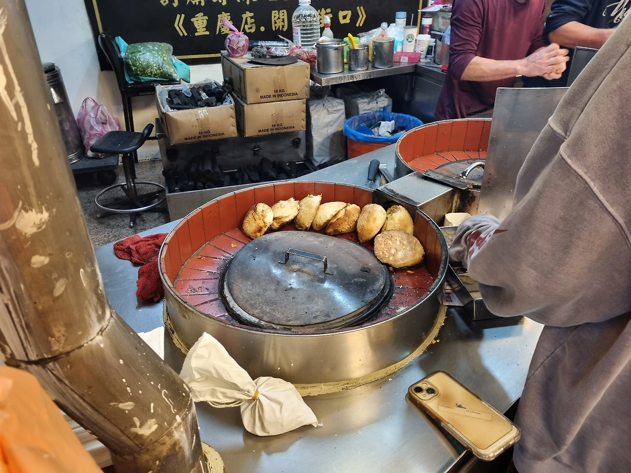 숙소로 돌아가는 길에 후추빵도 샀다. 위에서 말한 방송에서 보고 가장 먹어보고 싶었던 대만 음식이었다. 역시 기대한 맛이었고 대만에서 먹은 음식 중에 제일 마음에 들었다. 화덕에서 얇고 바삭하게 구워진 겉의 빵을 한입 베어 물자 그 안에 가득 차 있던 돼지고기와 파가 누가 더 즙을 많이 뿜어내는지 대결하였다. 아주 뜨거워서 조심해서 먹어야 했다.