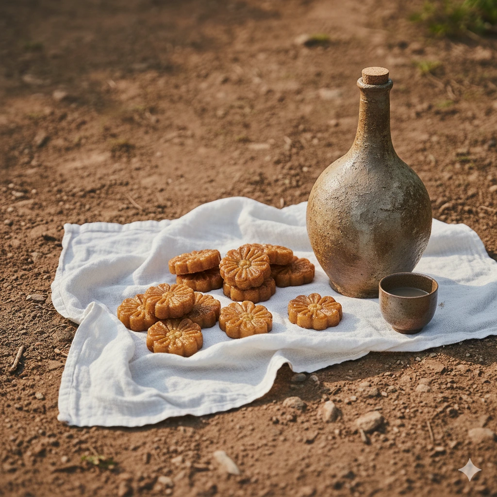집의 마당이었던 공간에 들어선 낭선은 들고 있던 보따리를 땅에 내려놓고 풀었다. 입구를 잘 봉해놓은 술병과 약과였다. 보따리를 풀자마자 달콤하고 고소한 냄새가 사방으로 퍼졌다. 호선은 약과를 보며 입맛을 다셨으나 먹으려 들지는 않았다.