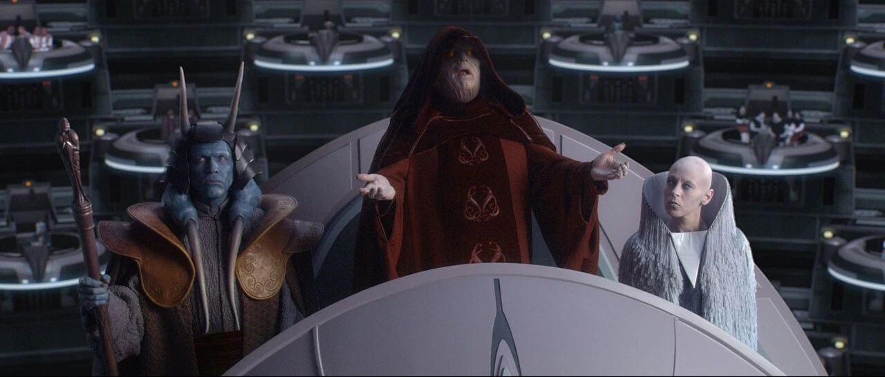 그러나 은하계는 철저히 속았다. 팰퍼틴의 정체는 제다이와의 경쟁에서 패하여 명맥이 끊긴 것으로 알려졌던 시스 군주 다스 시디어스. 그는 공화국 최고 수상이자 동시에 분리주의 연합의 배후였다. 나부 봉쇄부터 클론전쟁까지 모든 것이 그가 연출한 무대였다. 제다이는 뒤늦게 그를 파악하고 다스 시디어스를 막으려 하나 그는 이미 의회를 자신의 편으로 채워 장악하고 제다이 "아나킨 스카이워커"까지 포섭한 상태였다.