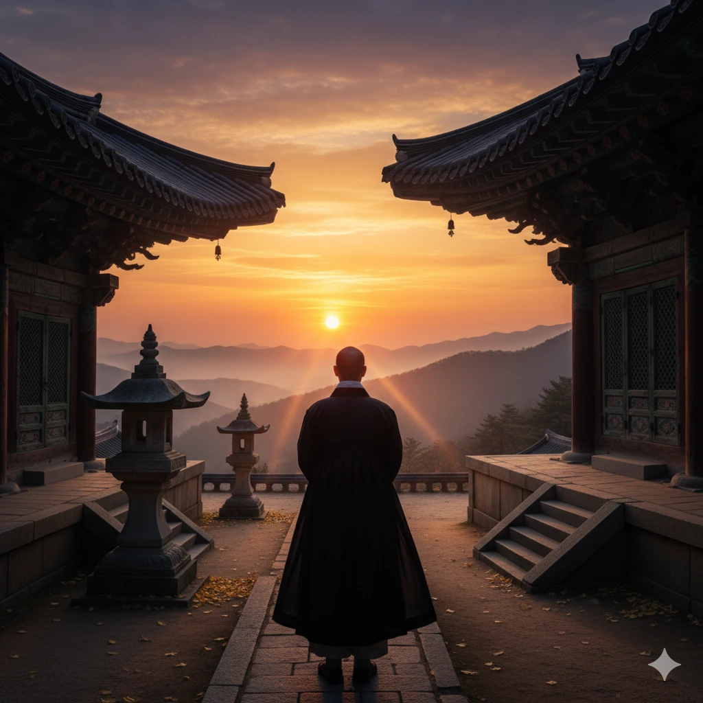 “안으로 드시지요. 곧 예불을 시작하겠습니다.”