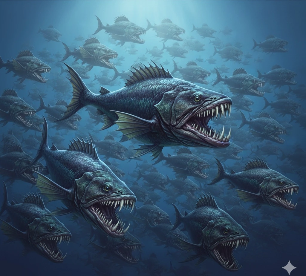 “칼날턱들이 사납기는 해도 맛은 좋아. 그렇지?”
