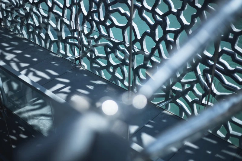 이곳의 상징을 하나 고르라면 유럽 지중해 문명 박물관(MuCEM, Musée des civilisations de l’Europe et de la Méditerranée)을 꼽겠다. 구항구에서 바다로 향하며 걷다 보면 마르세유를 지키던 생장 요새(Fort Saint-Jean)와 과거 여객터미널이었던 J4를 금방 만난다. 물론 가는 길을 골목을 통해서 갔다면 시간이 더 걸릴 것이다. 골목마다 가득한 새롭고 독특한 풍광과 가게들이 발걸음을 빨리 할 수 없게 만드니까. 그 끝 바다 근처에서 발견하는 게 바로 뮤셈이다. 가로와 세로 모두 72m의 큐브 모양의 건축물이다. 구시가지에서 이곳 뮤셈으로 넘어가려면 높고 좁은 구름다리를 건너야 한다. 시원스럽게 펼쳐진 바다와 구항구의 전체 모습을 보면서 걷는 것도 즐거움 중 하나다.