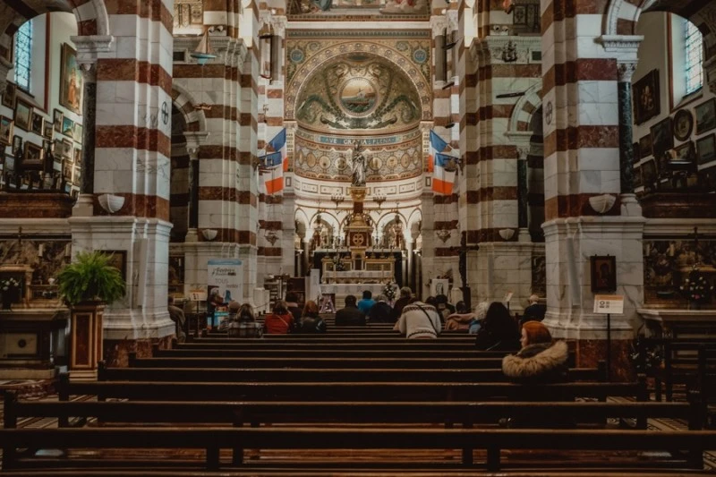 어부들의 안녕을 빌고 바다의 풍랑에서 생명을 지켜달란 기도가 성당을 만든 이유였다. 그래서 배가 걸려있는 본당 모습은 정말 이채롭다. 성당의 건축을 보면서 스페인 코르도바나 이탈리아 피렌체를 얘기하는 분들도 많다. 채색 대리석의 느낌 때문일 것이다. 항구 마르세유는 문화접변의 현장이었구나 다시 한번 깨닫게 된다. 만남은 그렇게 창조의 원동력이었다. 성당 밖으로 나올 때 우리의 시선은 다시 자연스럽게 시가지와 바다로 향하고 이프섬까지 뻗는다.