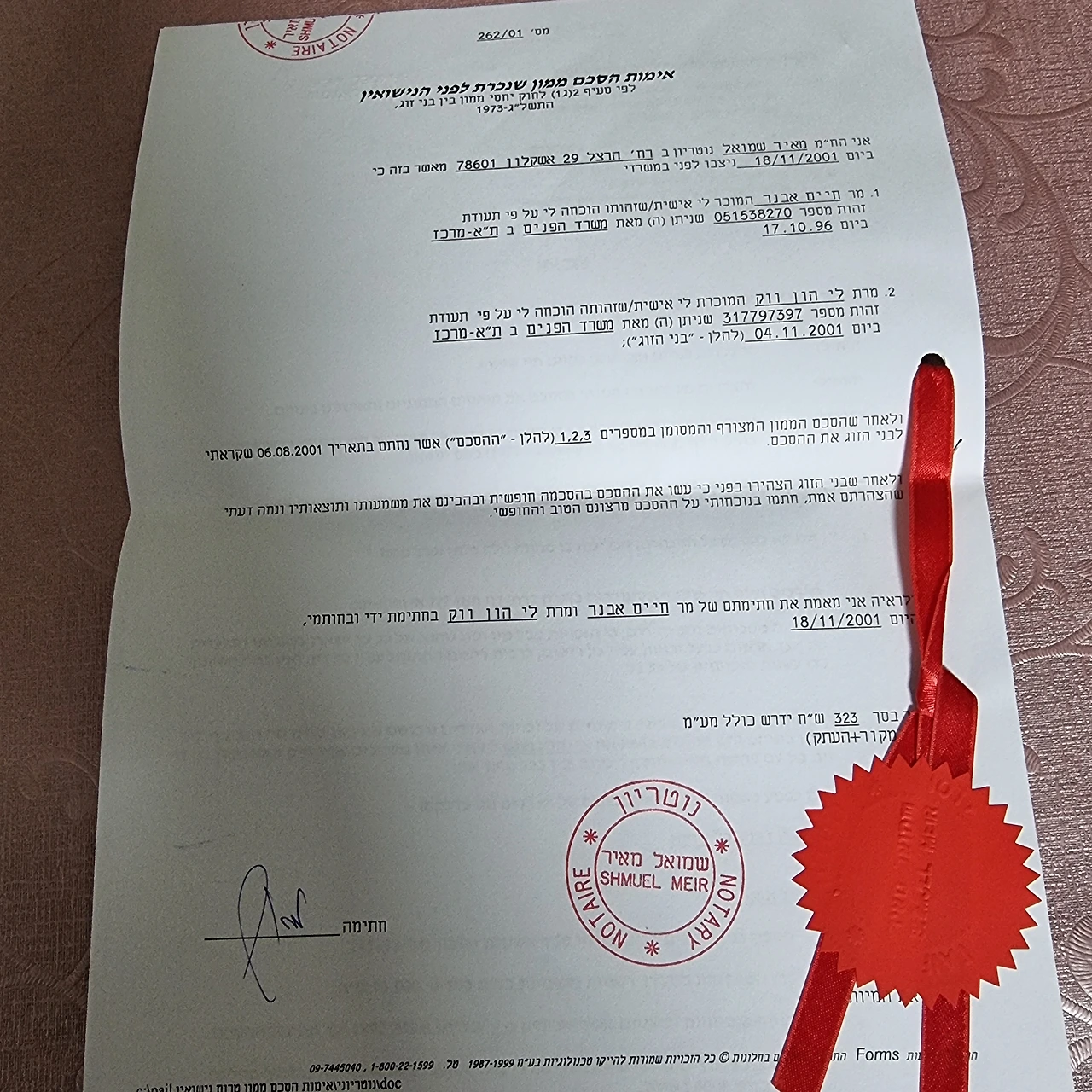 남편의 고향인 아쉬켈론에서 있는 아브너의 변호사를 만나 혼전 계약서 Prenup을 작성하고 싶다고 했다.