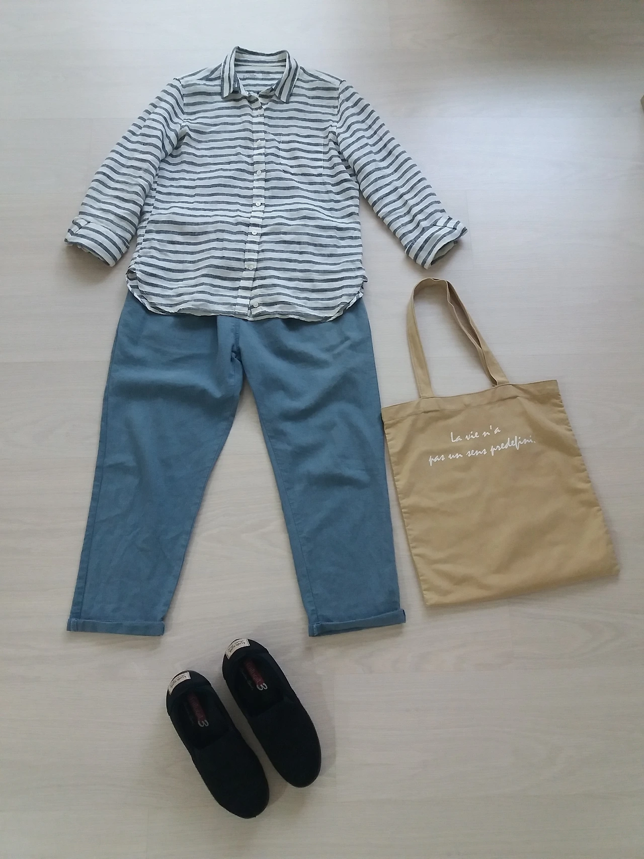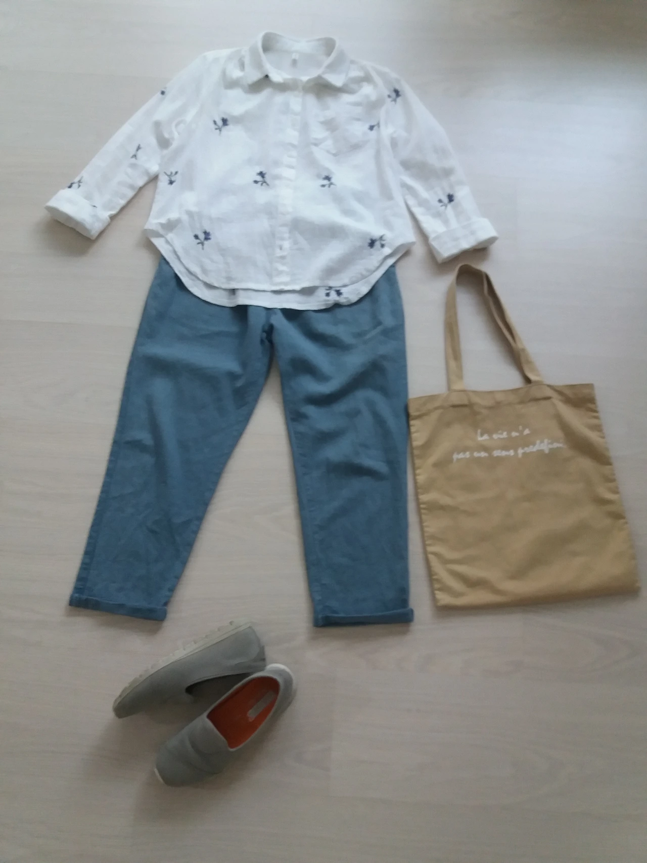 자수 셔츠와 줄무늬 리넨 셔츠랑