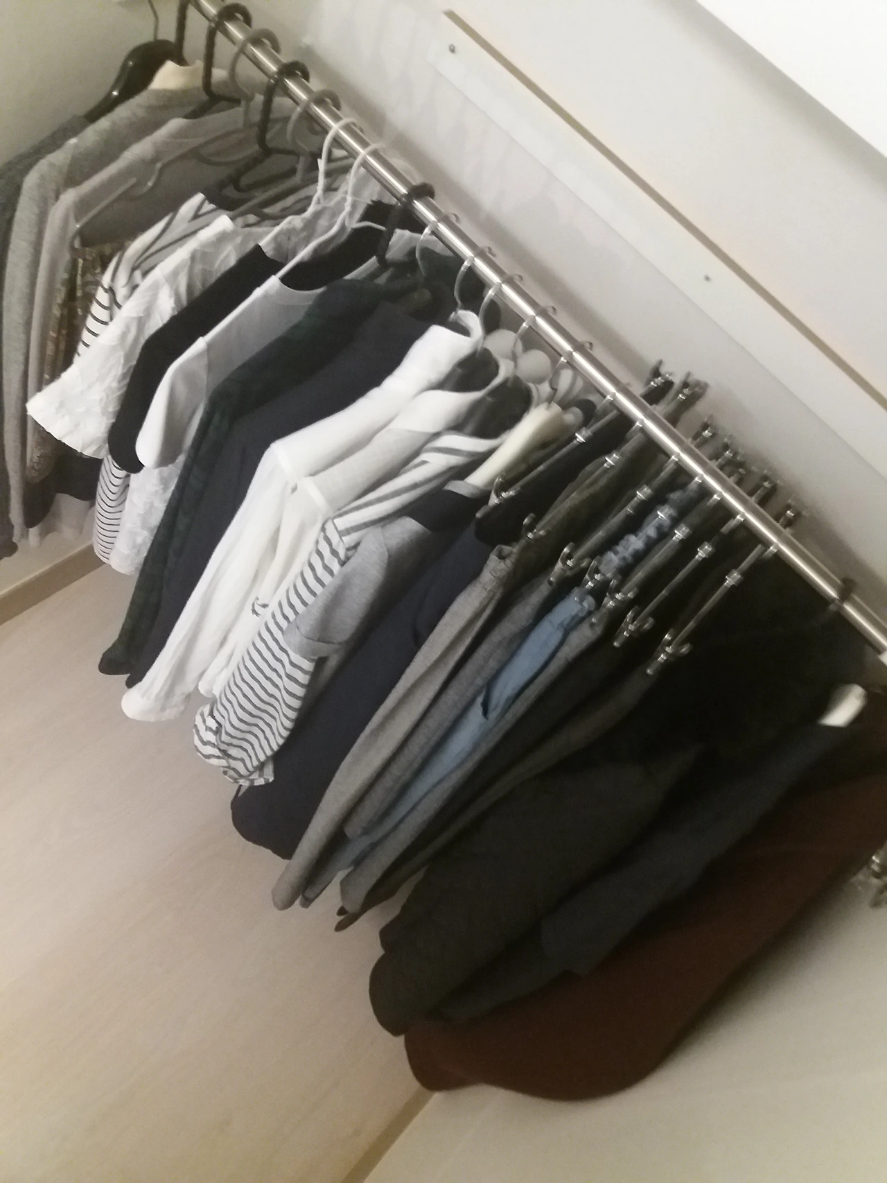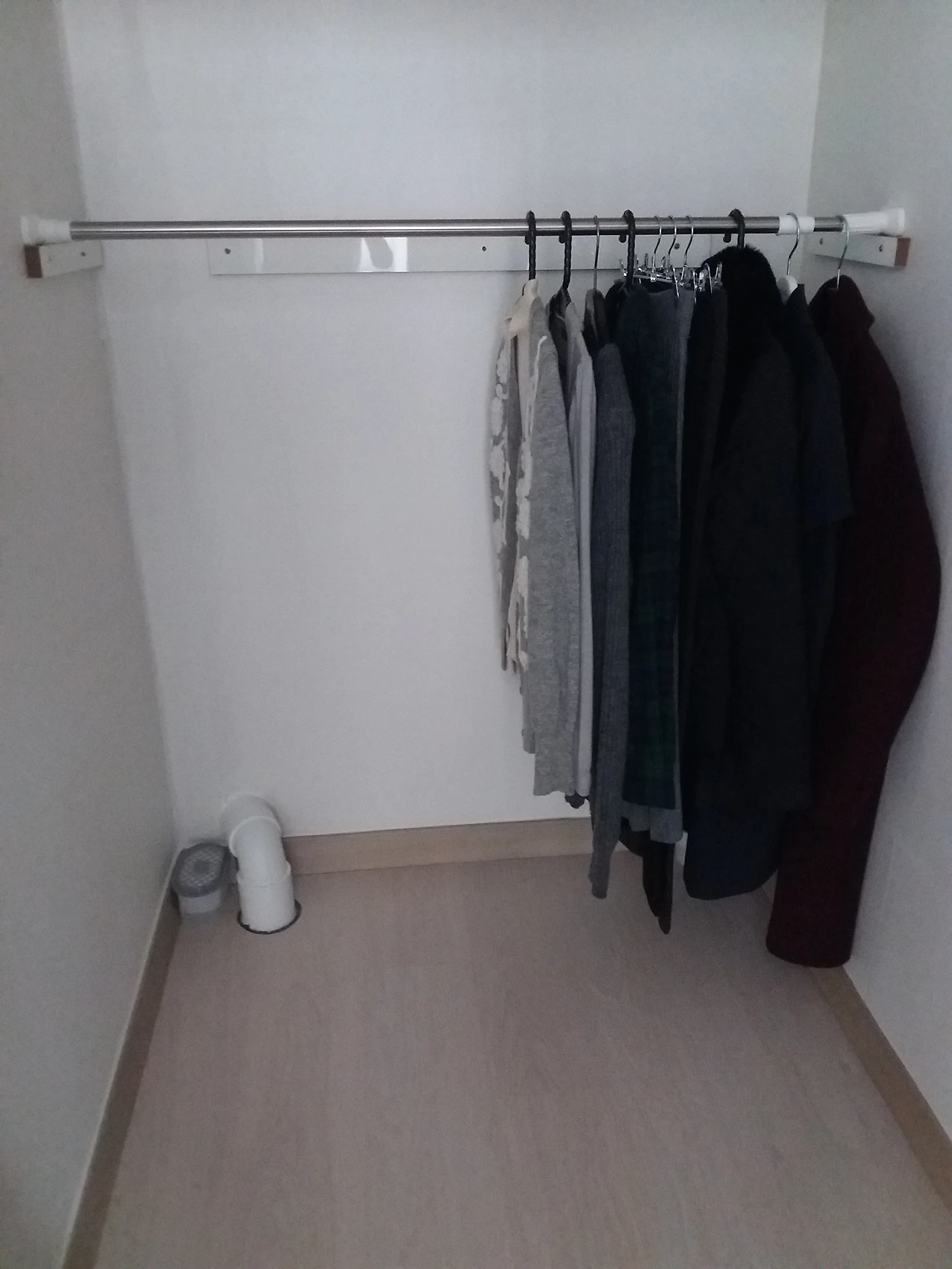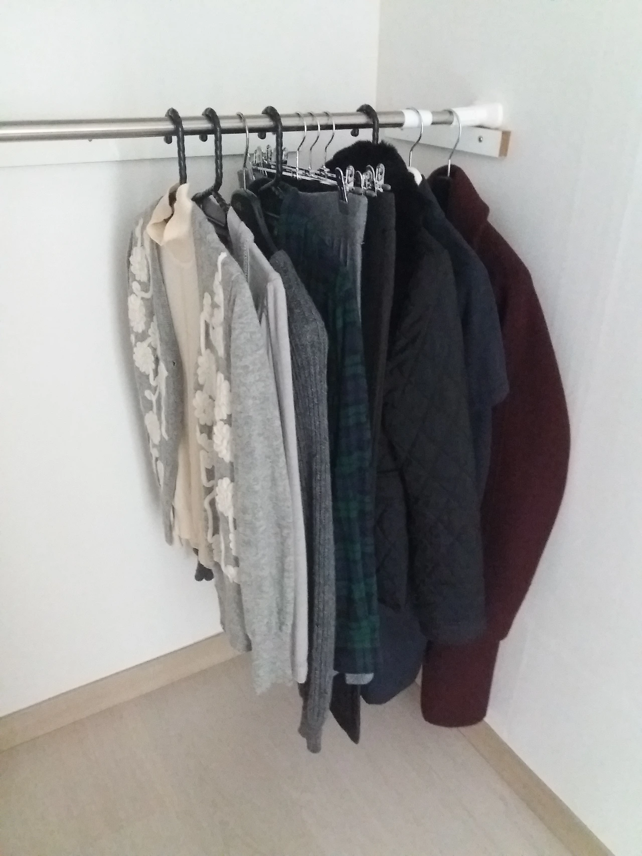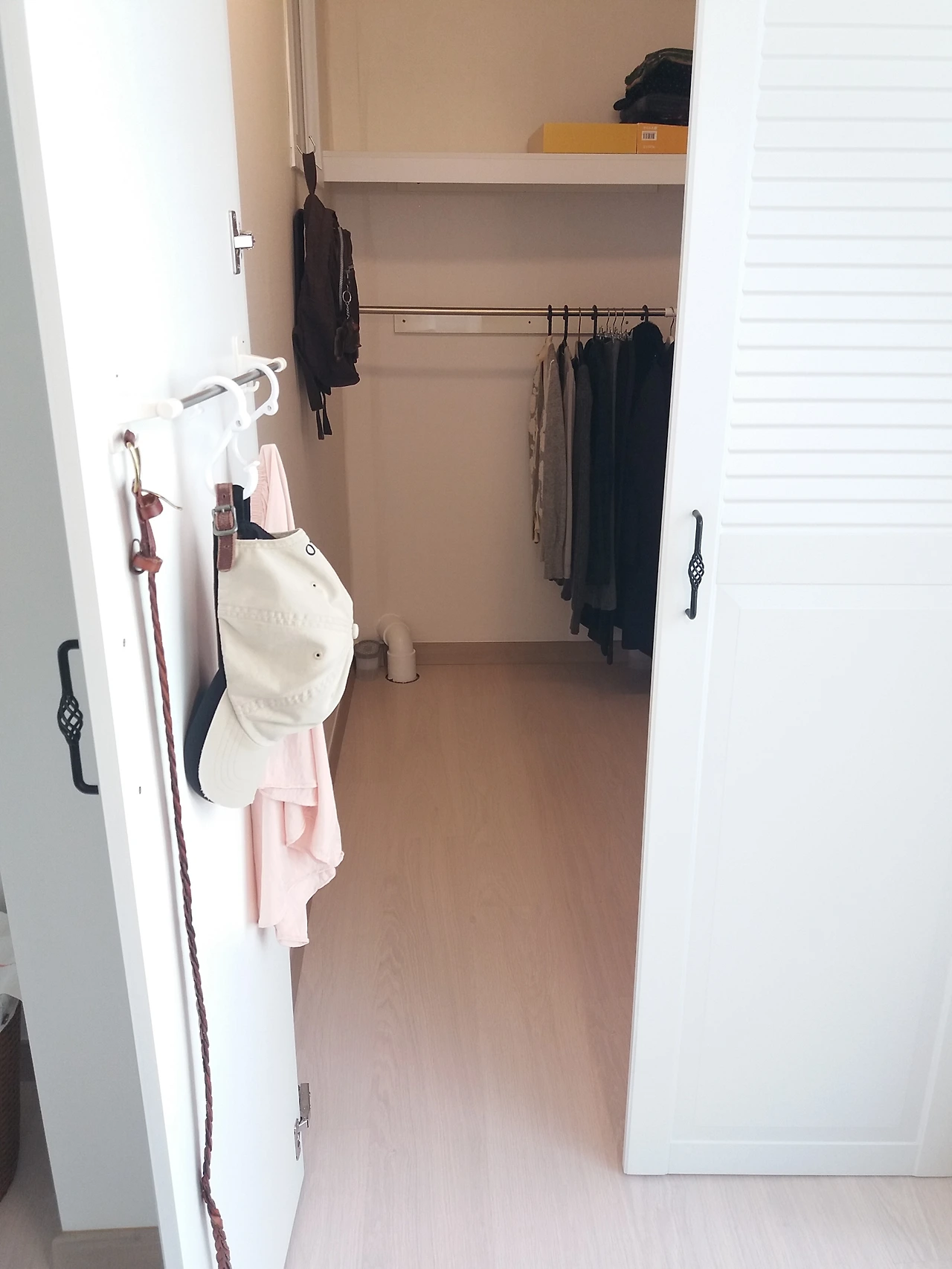겨울 패딩도 안 보이는 벽에 걸려 있다