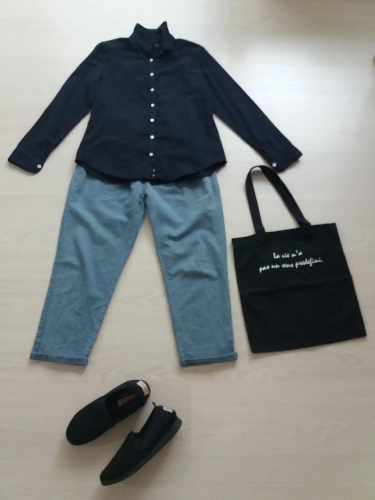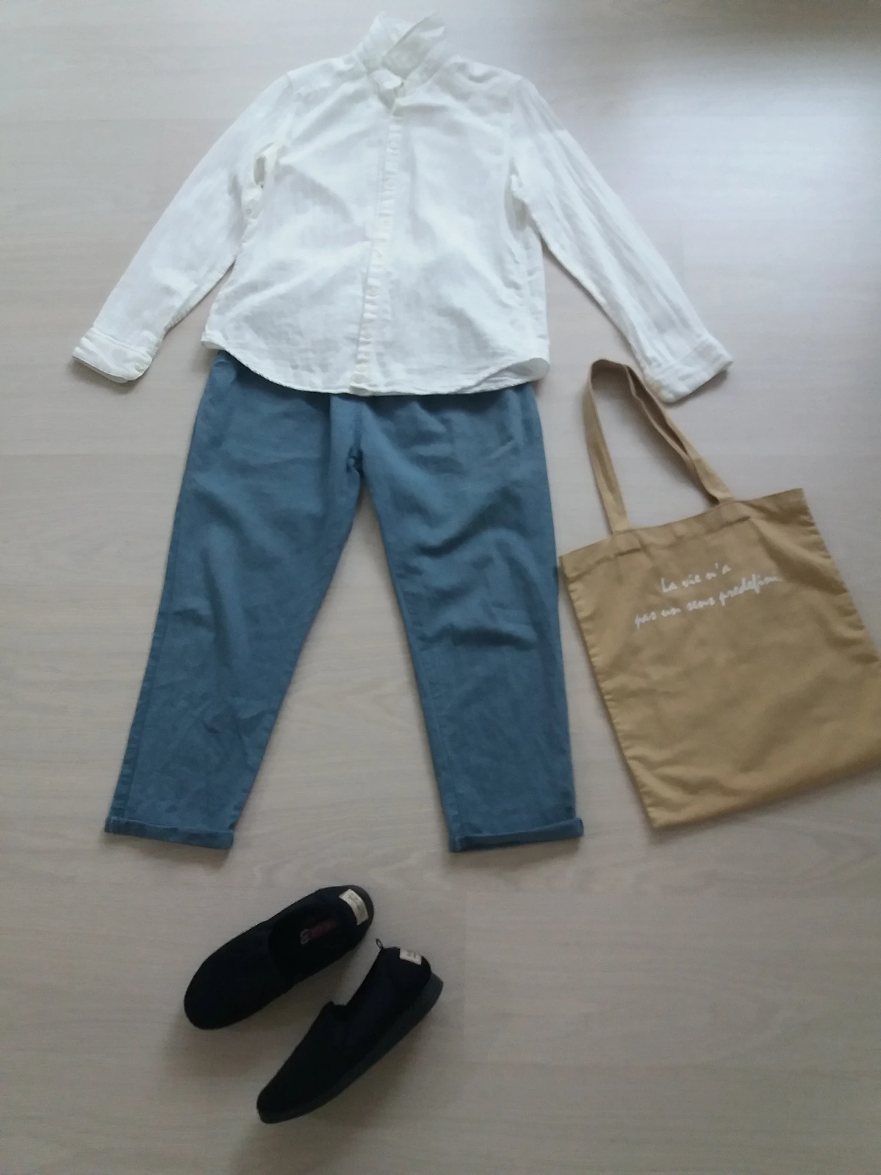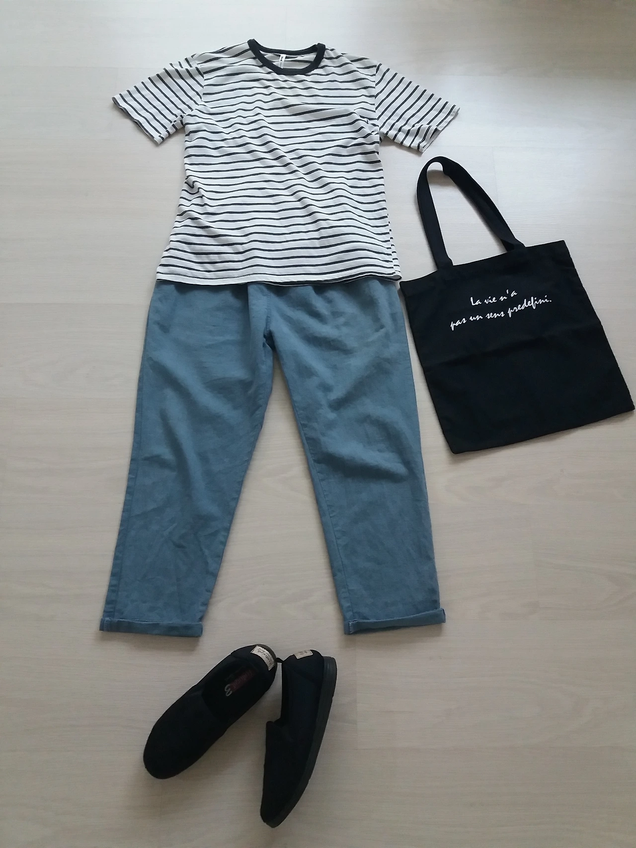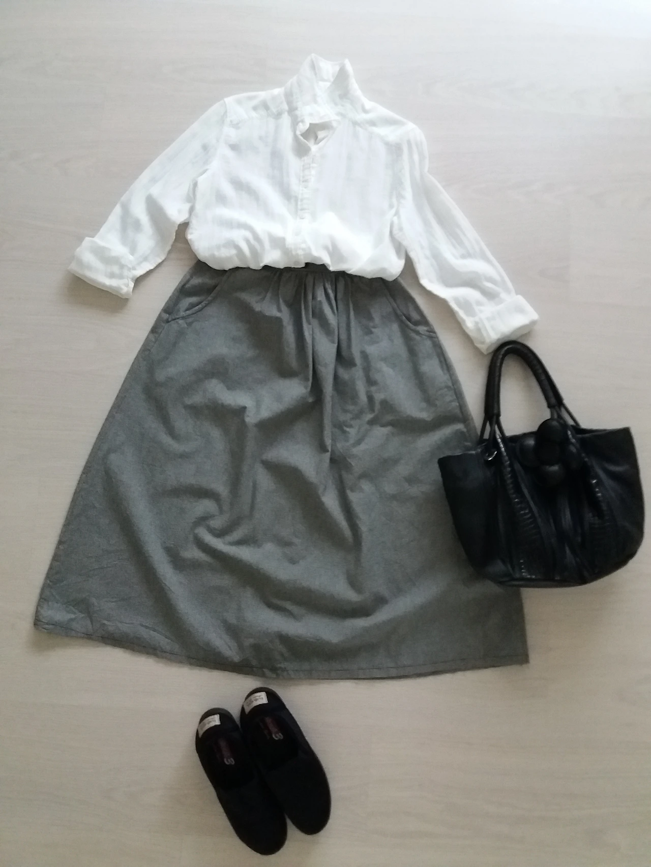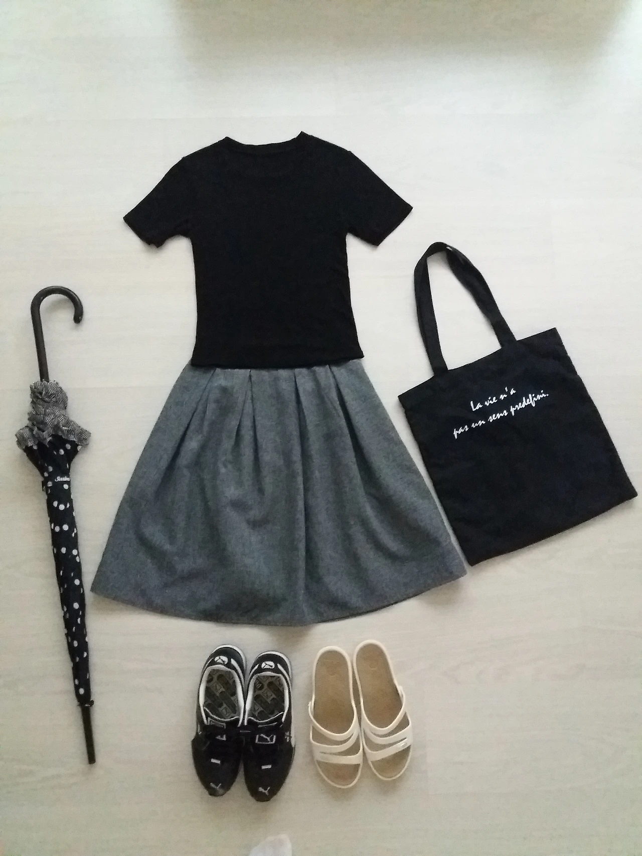 바빠서 보이는 대로 걸치고 들고 나왔어!