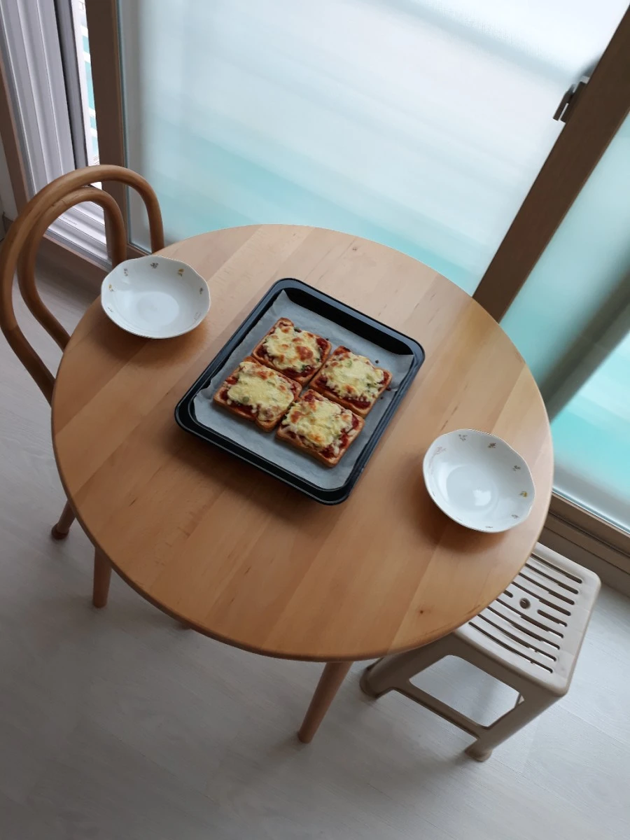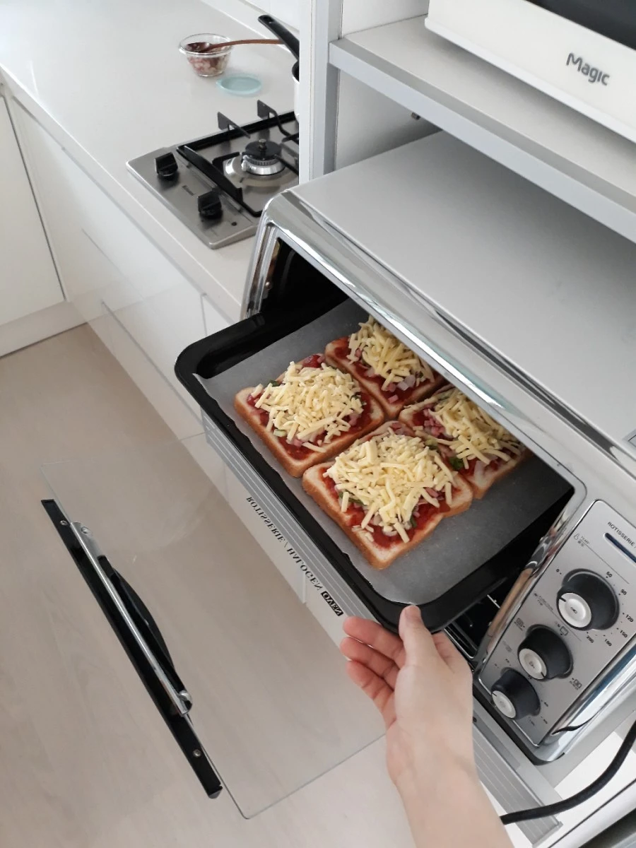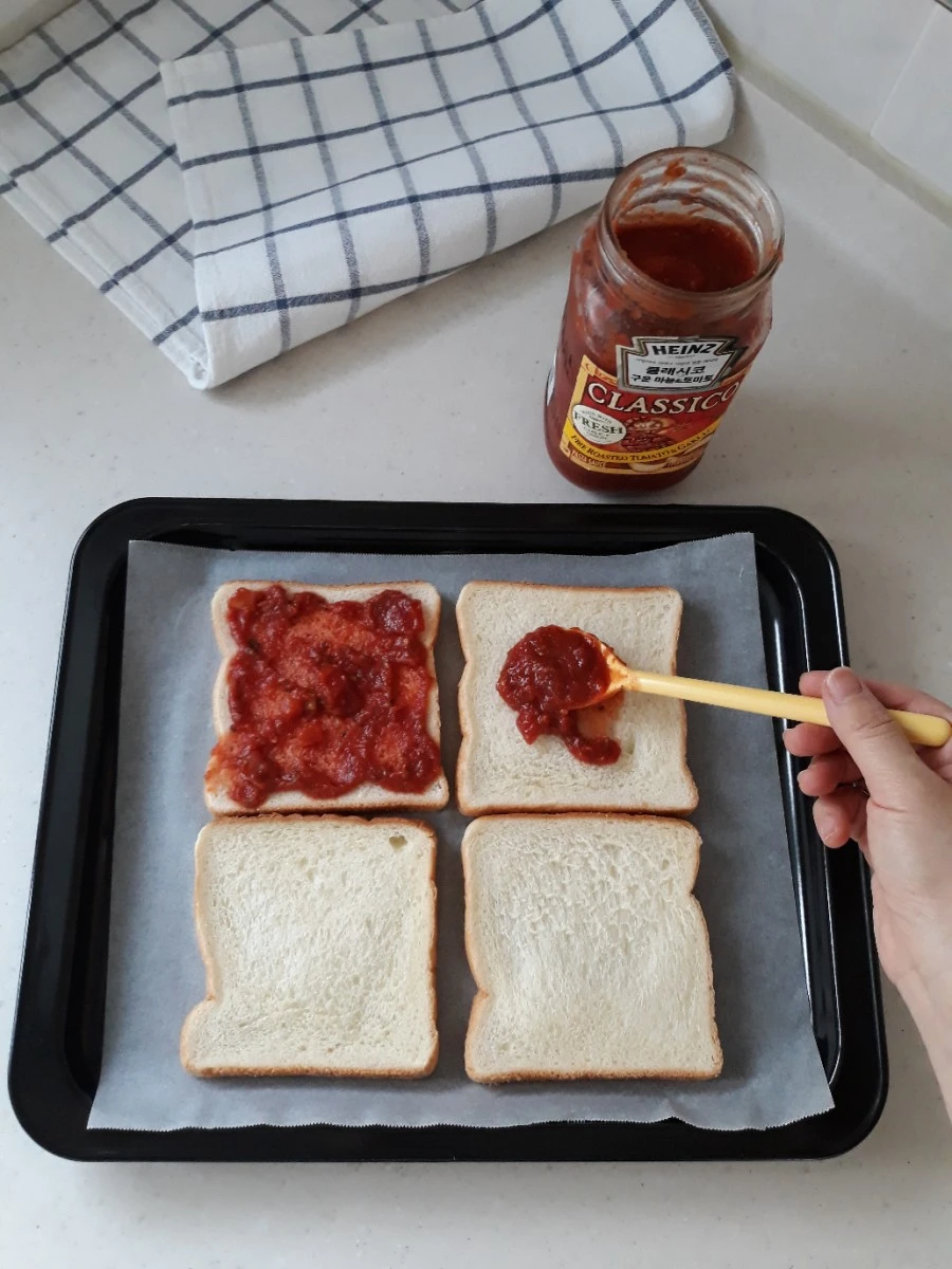 야채 없이 소스에 피자 치즈만 올려도 굿