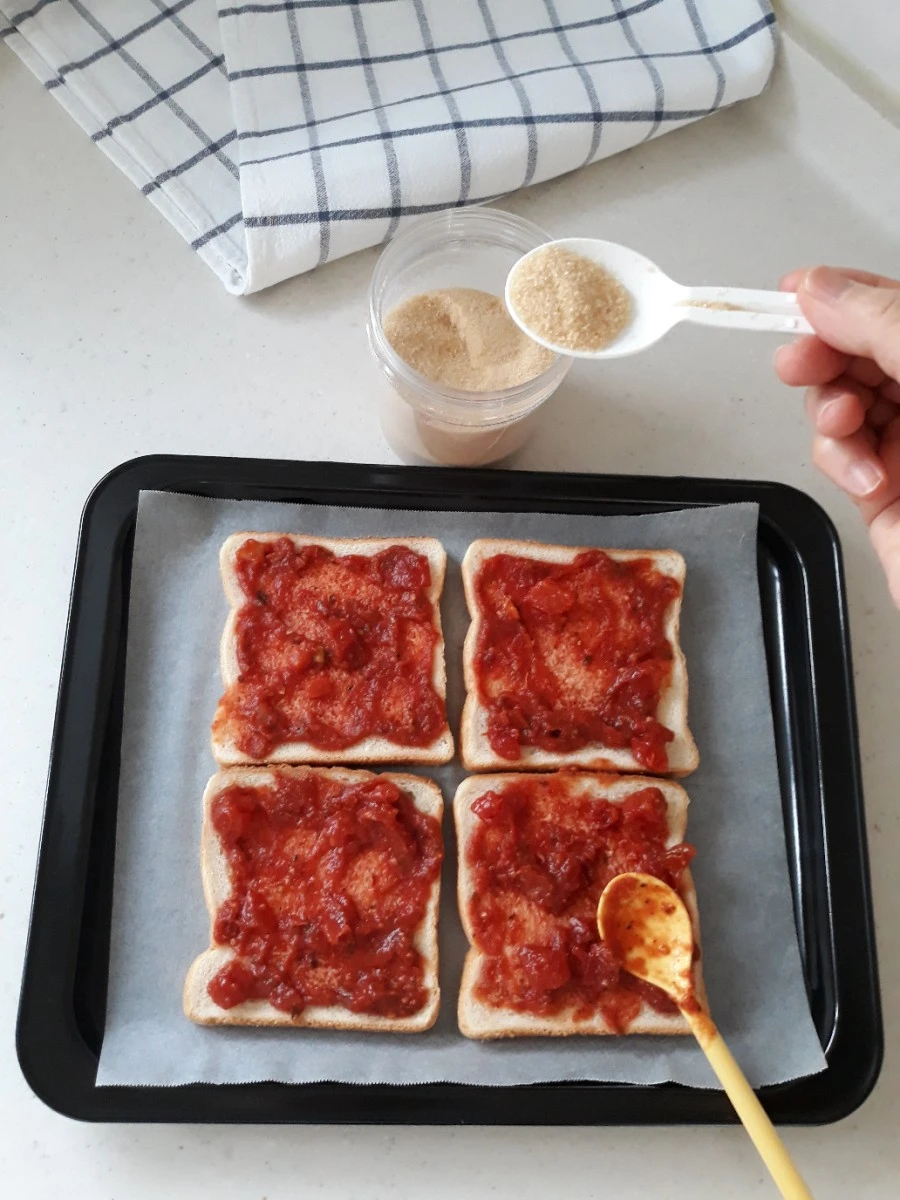 소스 위에 설탕 솔솔 (신맛을 줄여줌)