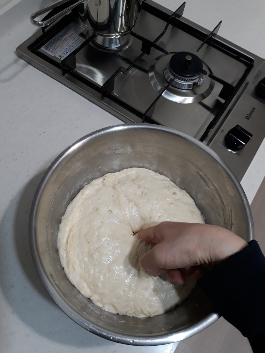 어째 꽈배기랑 호떡 생각이... 하지만 이건 치아바타 반죽 ^^