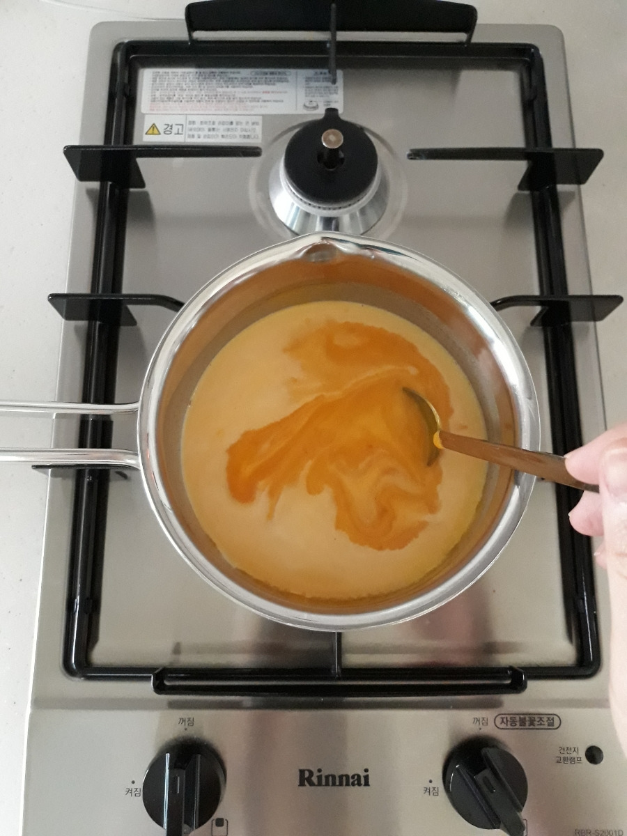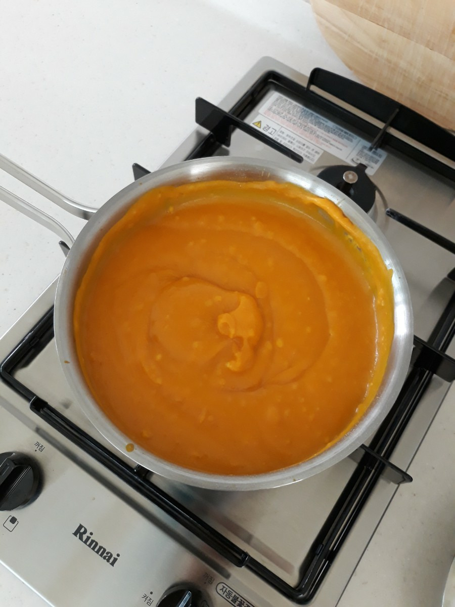 찹쌀가루를 넣어 되직하게 끓여 두고