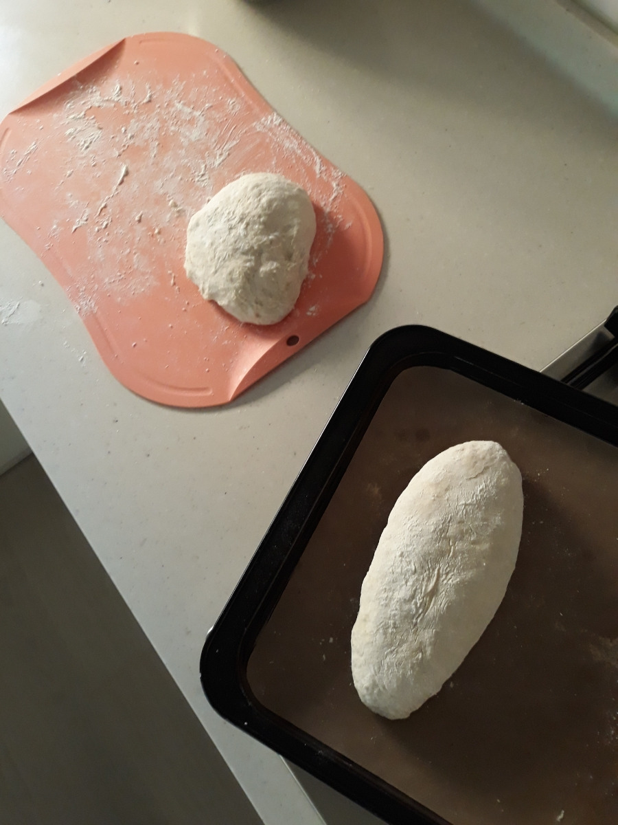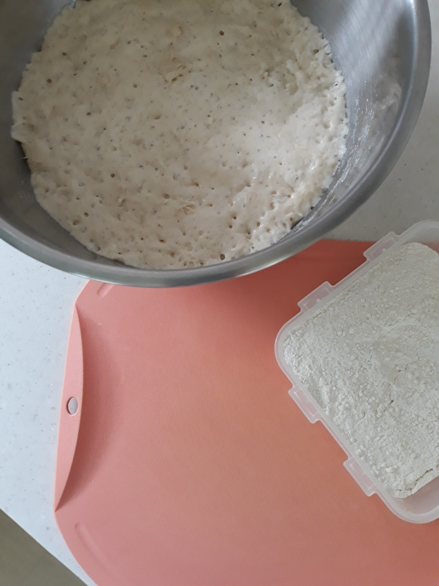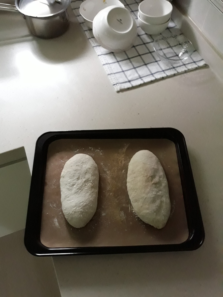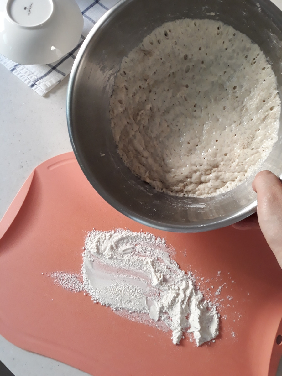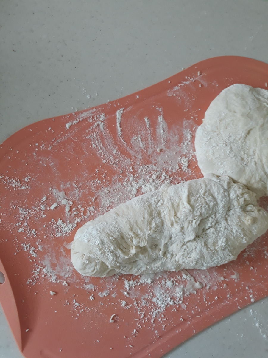 두배로 부풀면 꺼내서 덧가루 뿌리고 칼집 넣기
