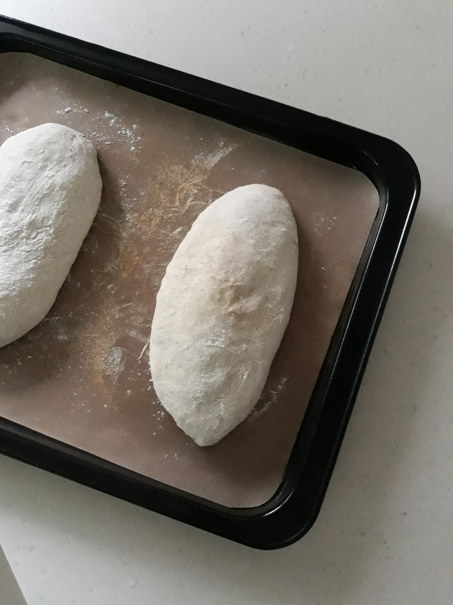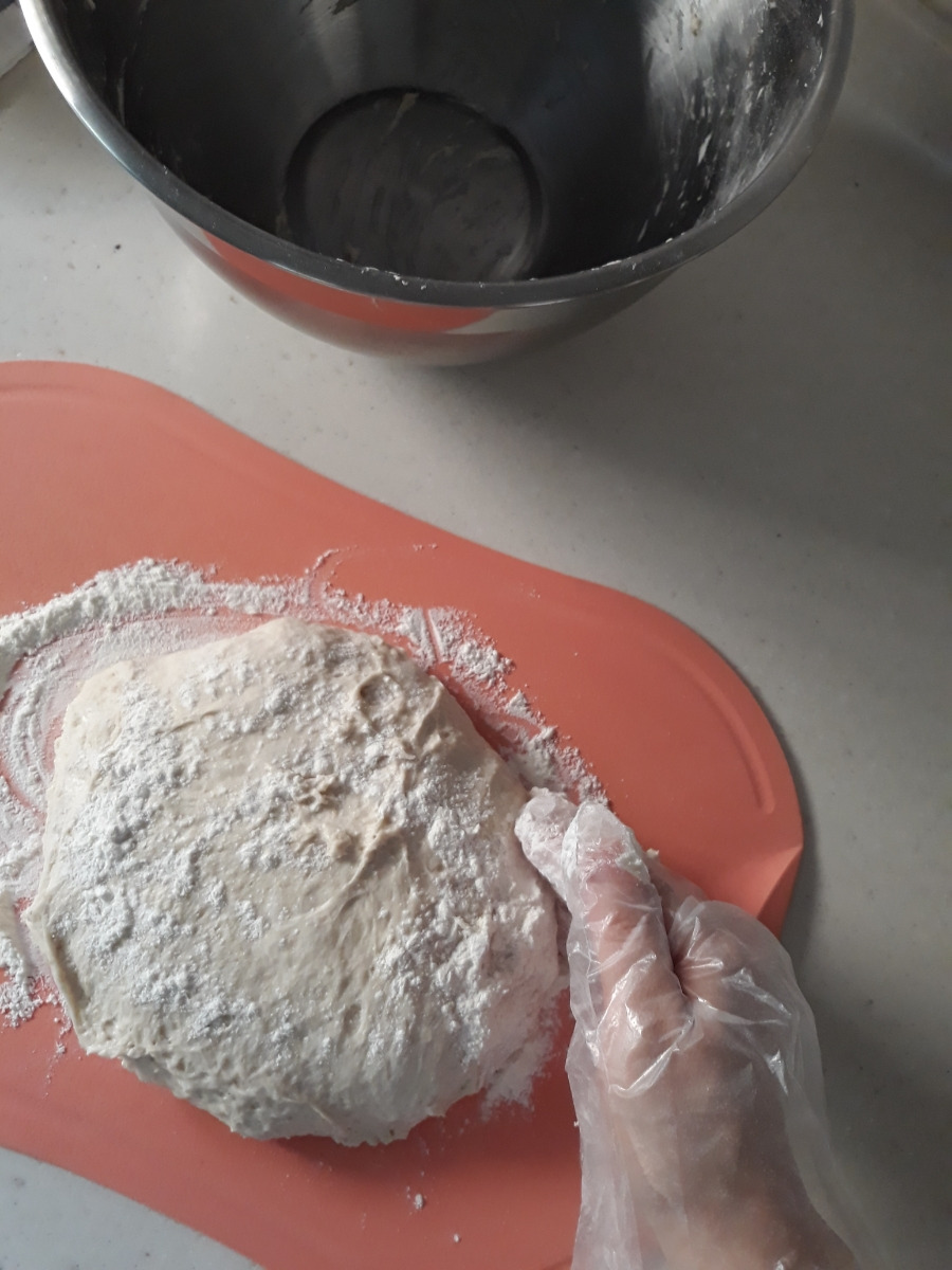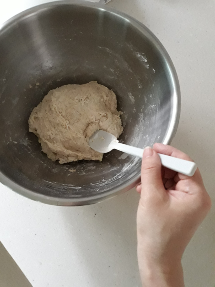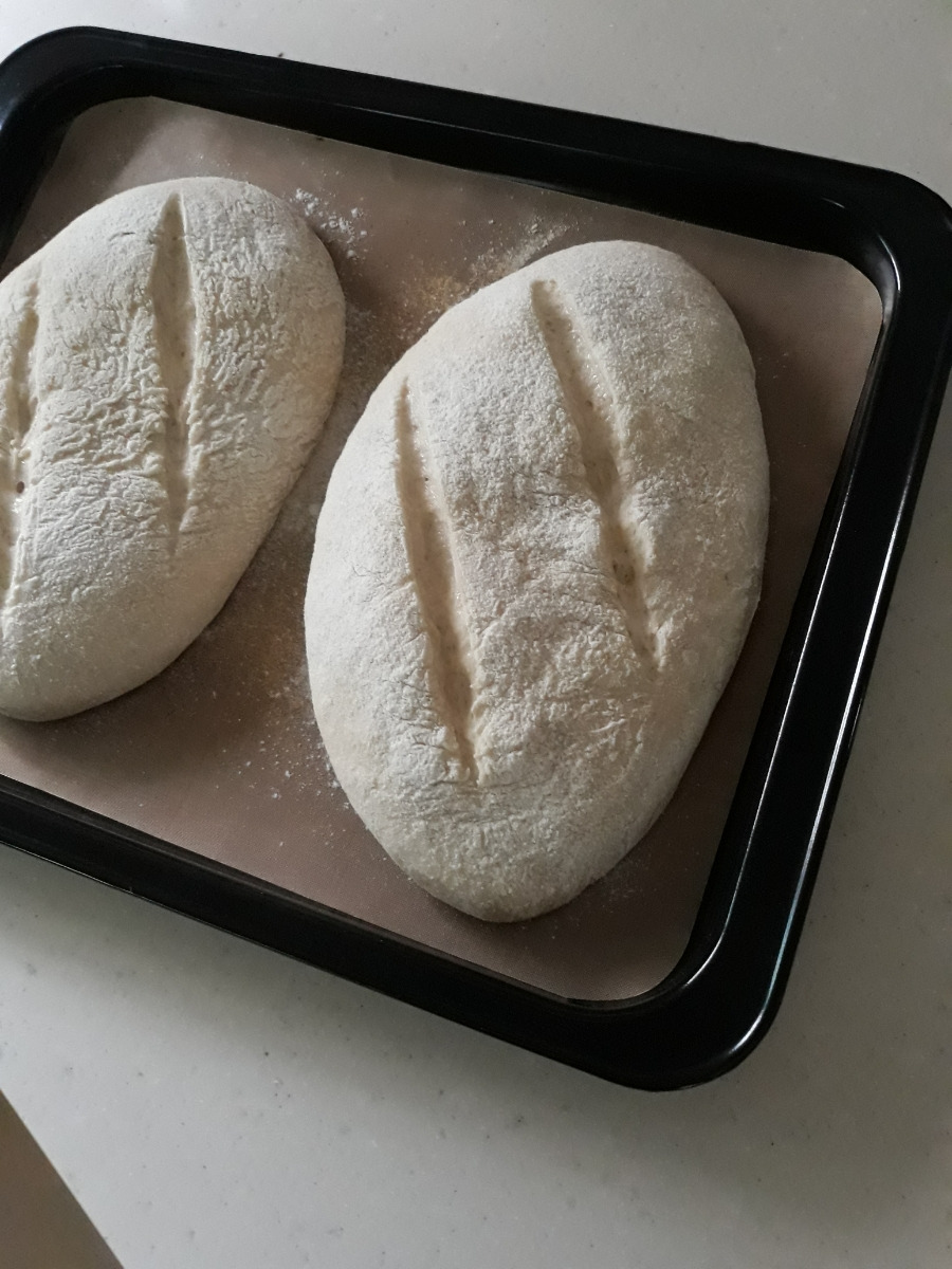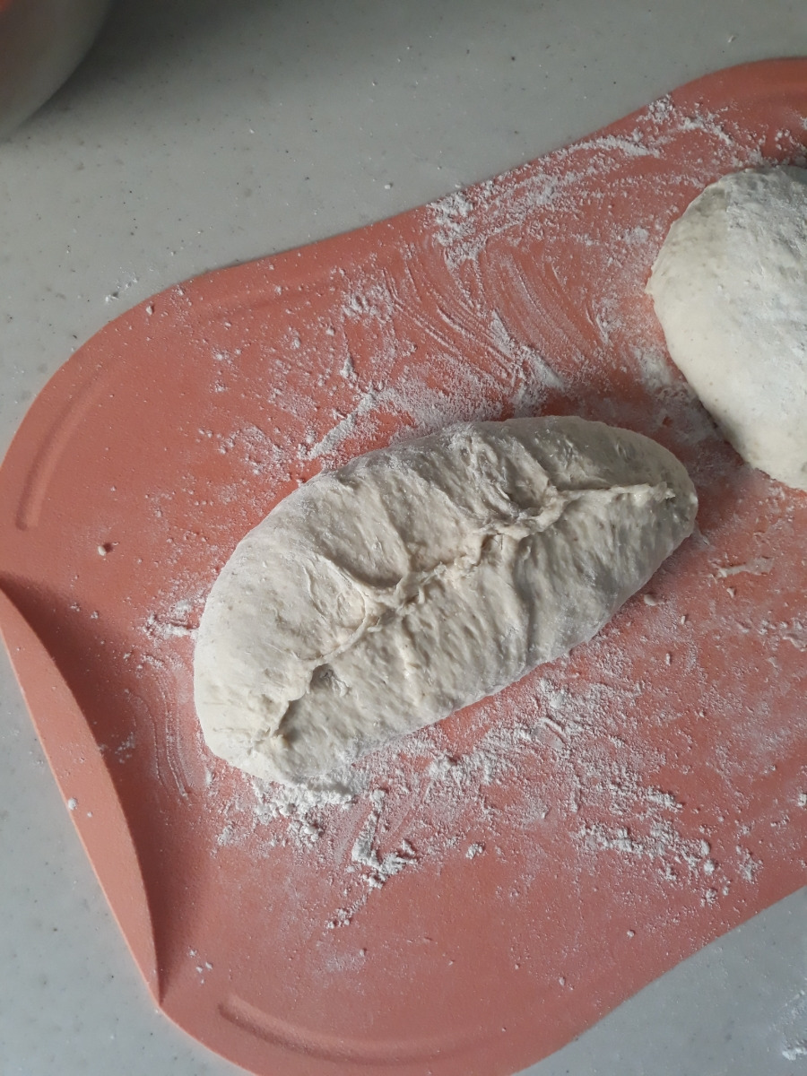두배로 부풀면 꺼내서 덧가루 뿌리고 칼집 넣기