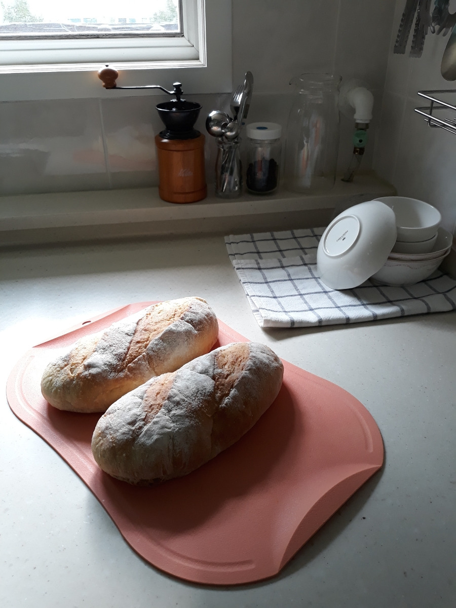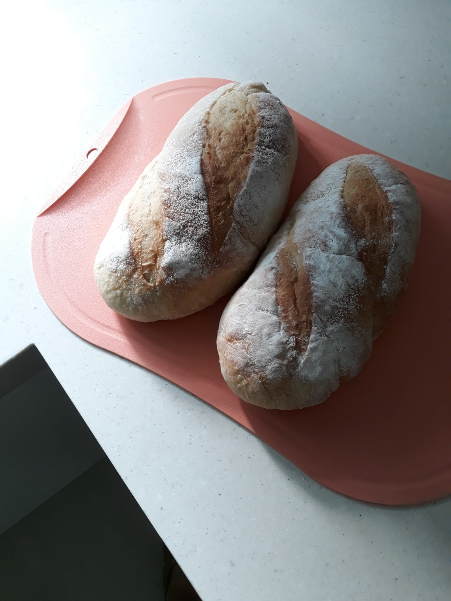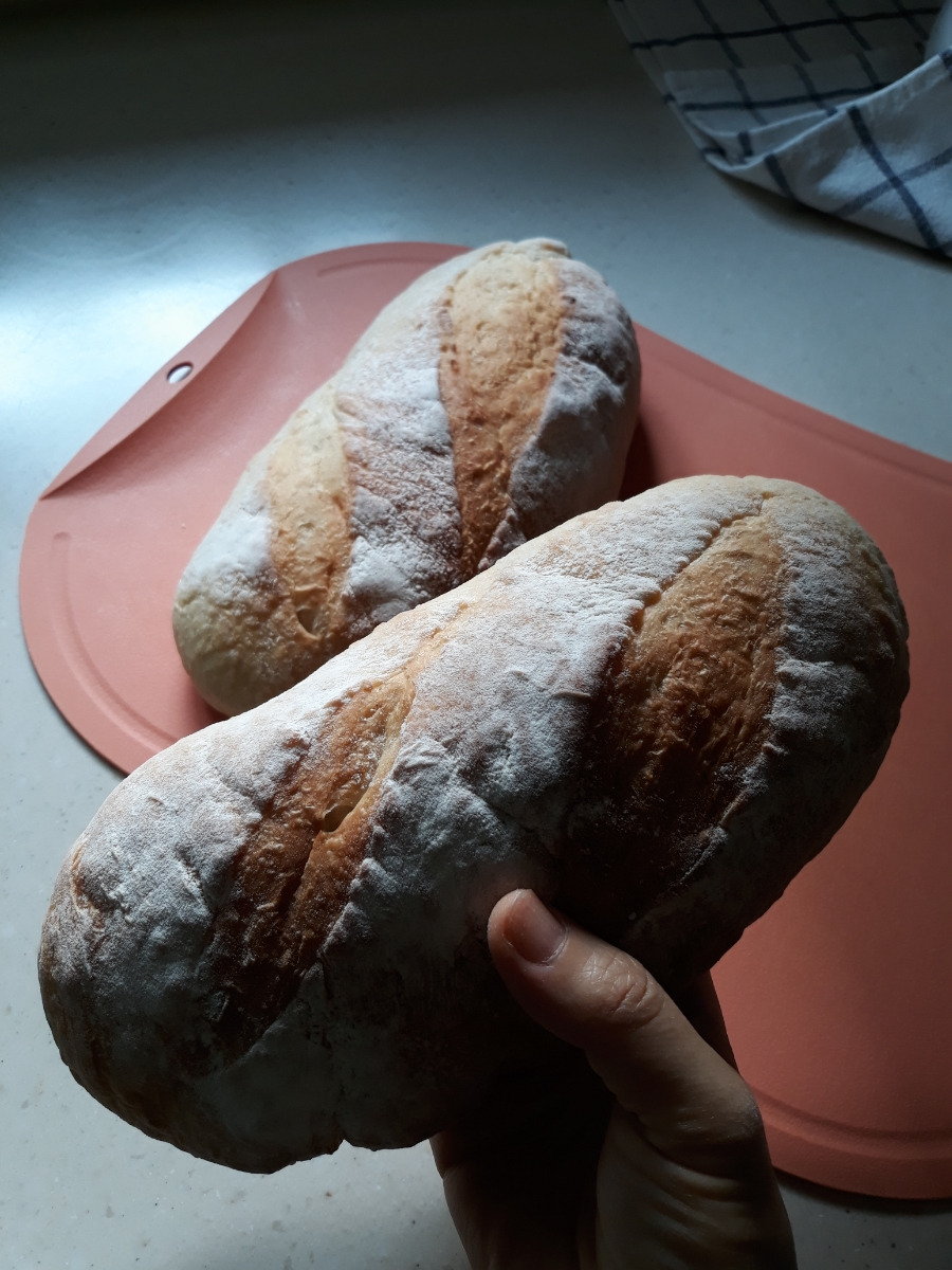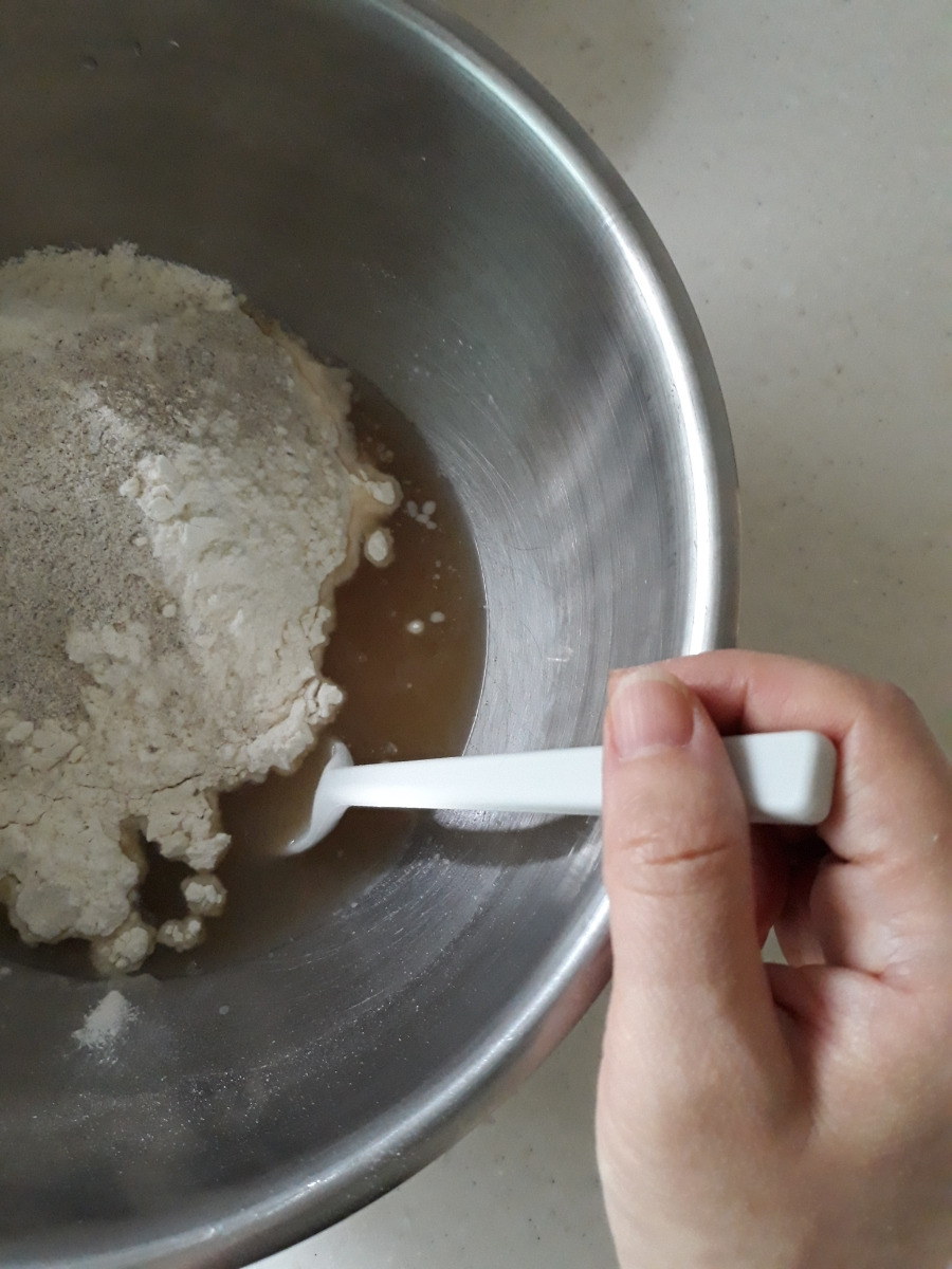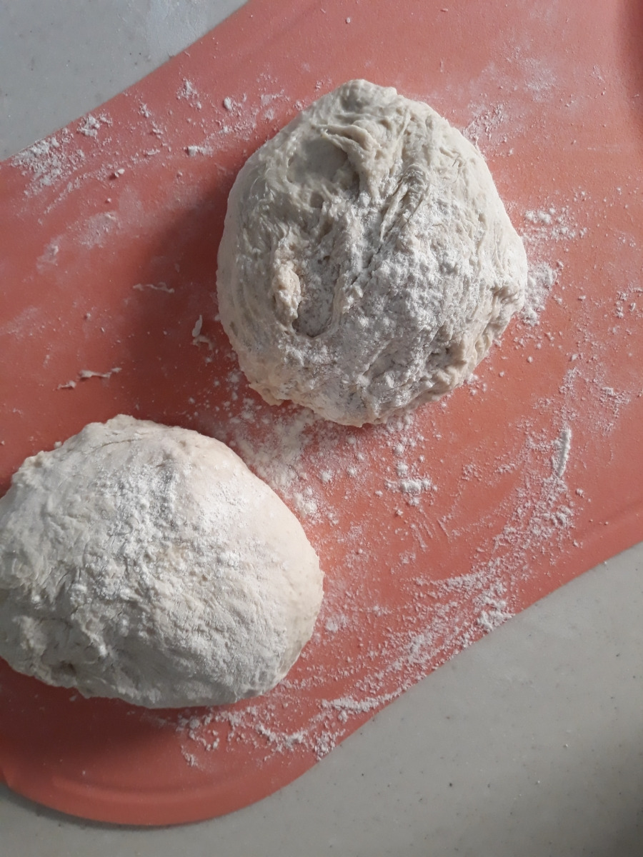 두배로 부풀면 꺼내서 덧가루 뿌리고 칼집 넣기