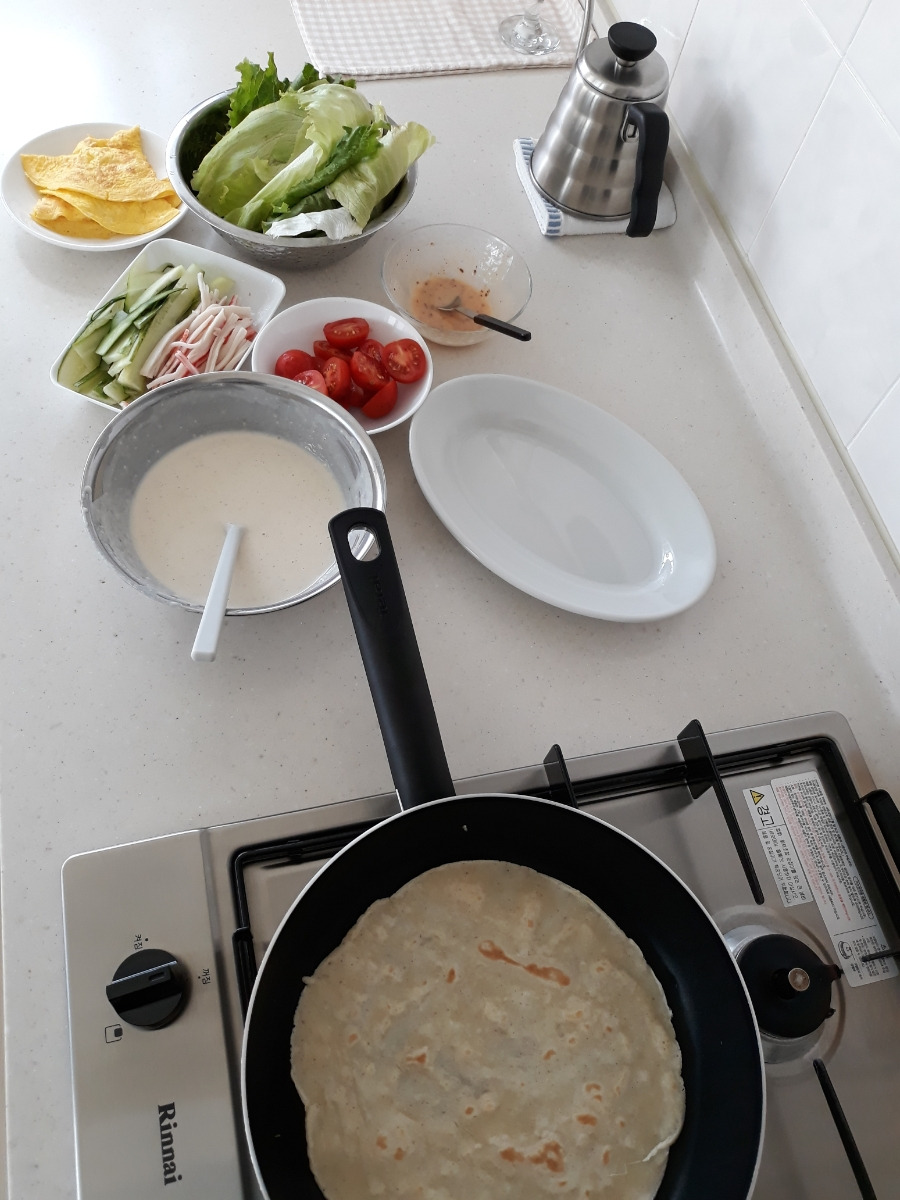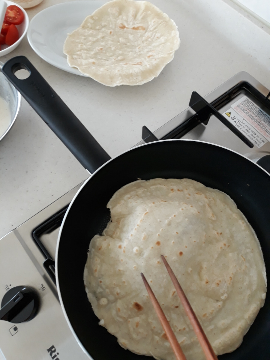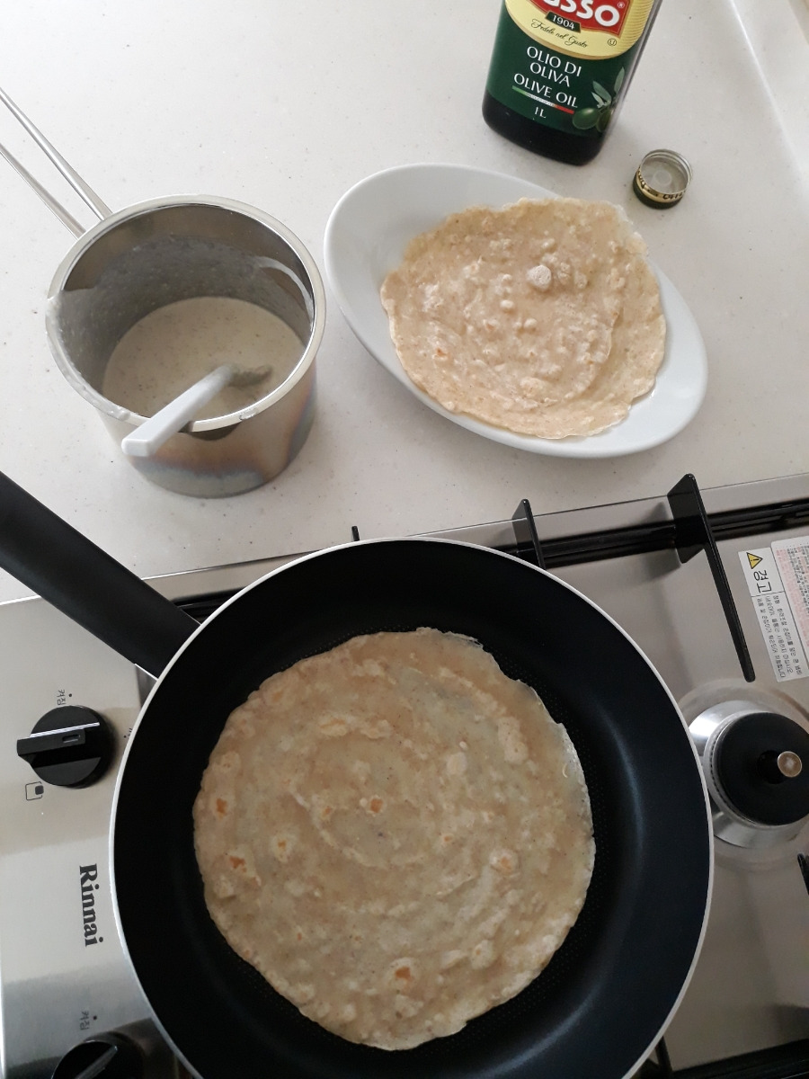 첫 장은 팬에 기름을 바르는 정도로 넣고
