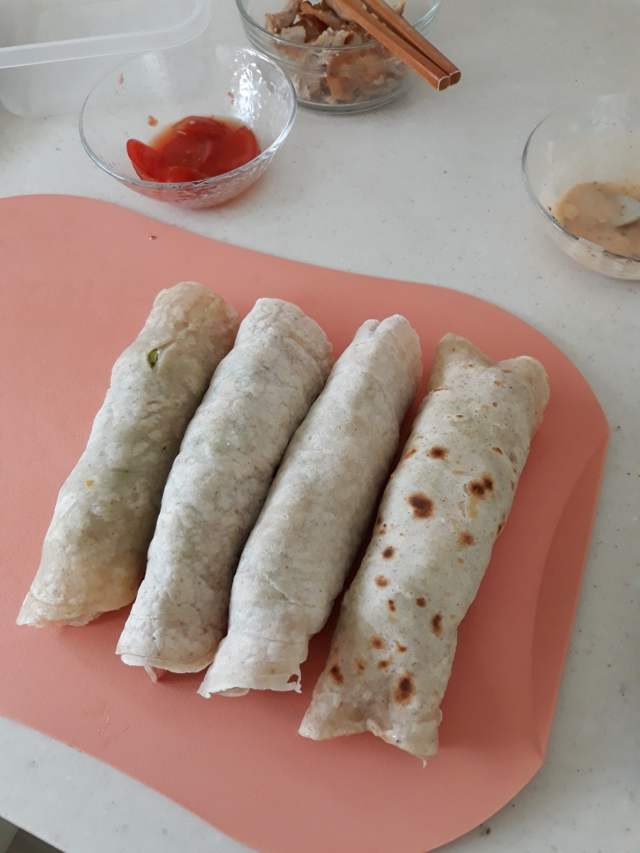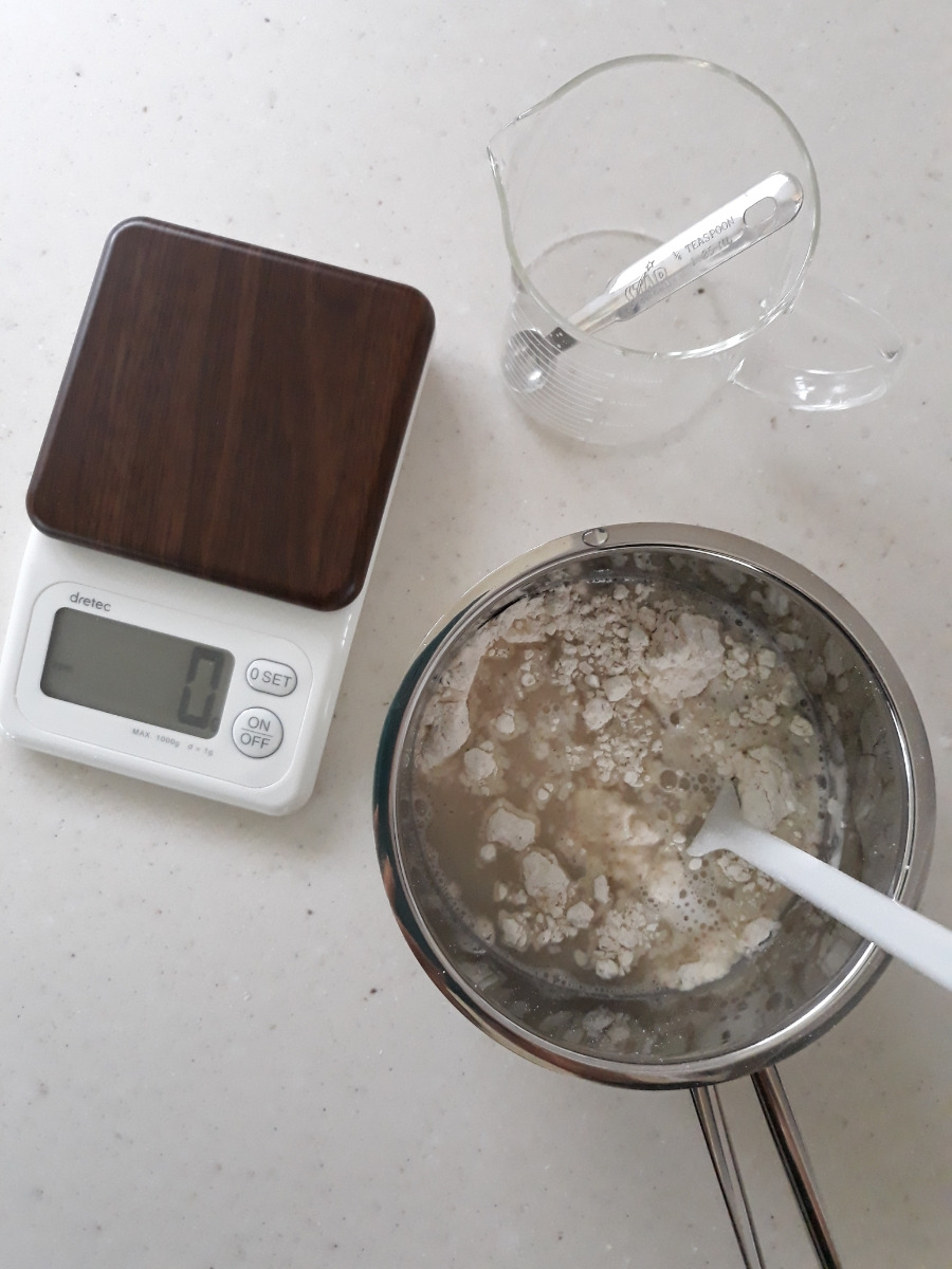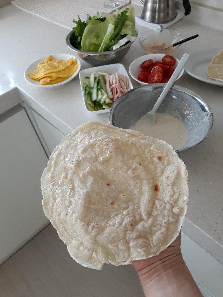 중력분 150그램 (통밀가루 50그램 섞었다)