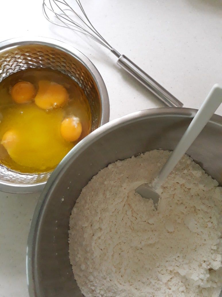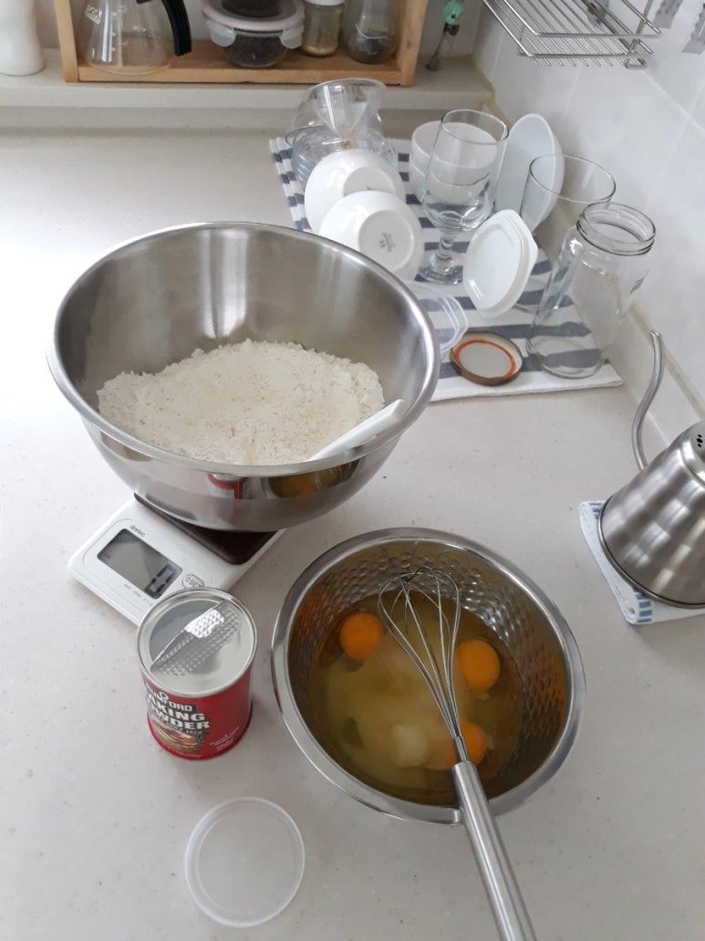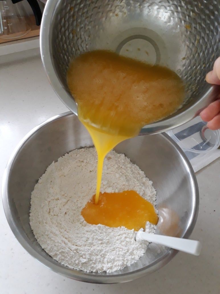 1. 상온의 계란 오일 설탕 소금 저어 녹이기
