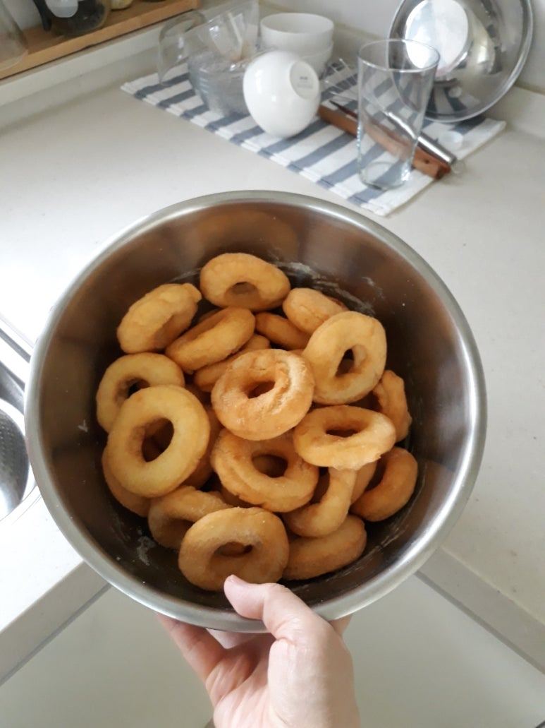 숙모가 미리 만들어 둔 도넛을 꺼내주셨는데