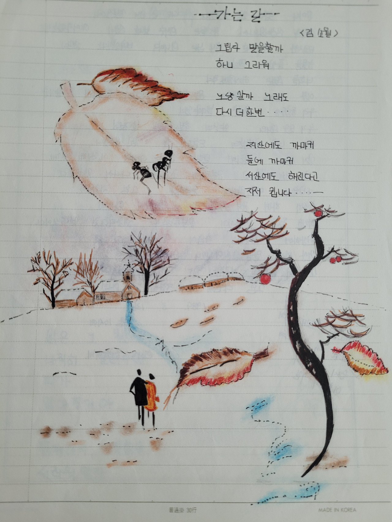 학창 시절, 책받침에 시화가 유행이었는데 , 그림을 따라 모방하고 시를 볼펜으로