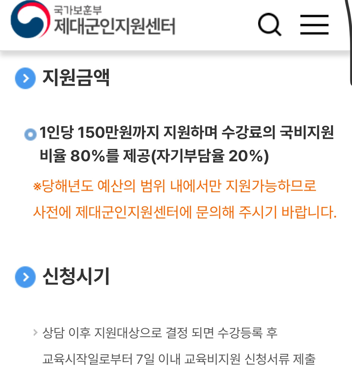 * 나는 보훈부에서 교육비 50만원, 전직지원금 200만원 정도 지원받았다