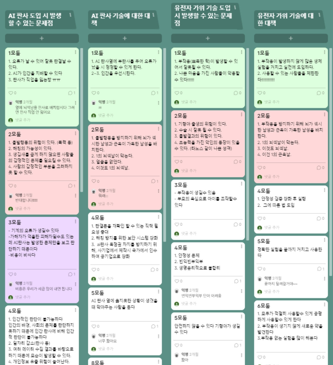 우리 팀은, 아니 나는 며칠간 갈피를 잡지 못하고 시간만 흘려보냈다. 신사업이 아니라 기존사업의 개선에 집중하는 우리를 발견하고서 일하는 방식의 변경이 필요하다고 봤다. 그래서 패들릿을 접목해 봤다. 패블릿은 인터페이스가 심플하고 브레인스토밍에 좋다. 메모지를 뗐다 붙였다 하는 칸반보드를 활용하듯 보이는 화면에서 아이디어를 가볍게 시각화하기 좋다는 판단에서였다.