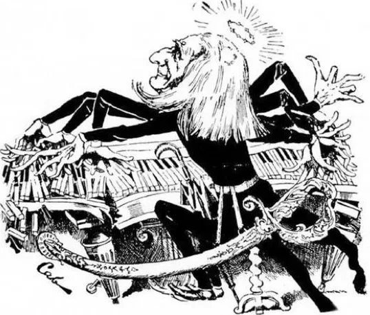 리스트의 피아노곡들도 엄청난 기교를 요구한다. 리스트의 피아노 곡이 얼마나 어려우면 당대 이런 그림이 나오고 사람들의 큰 공감을 얻었을까.