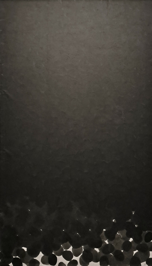 아래 그림은 먹으로 그린 거라고. 검은 물방울이 하늘로 올라가는 느낌을 받았다. 혹은 하늘에서 내려오는 걸까?
