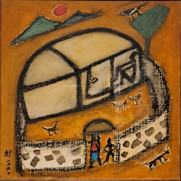 장욱진 님의 그림에는 나무와 새, 소, 집, 가족, 달, 해 등등 친근한 소재들이 자주 등장한다.