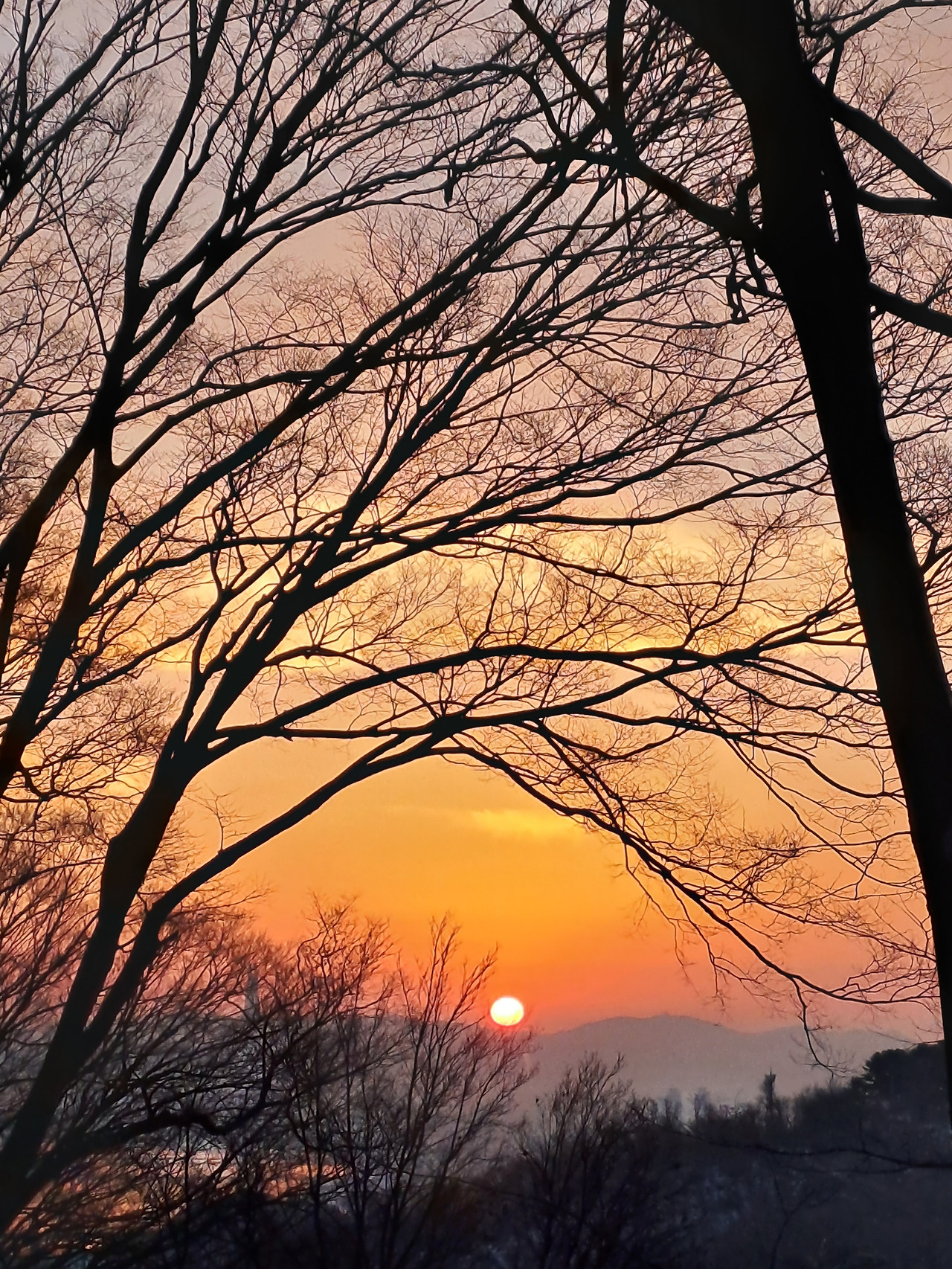 아침 추위에 점점 더 시려오는 발을 달래며 한참동안 사진도 찍고 떠오르는 해를 바라보았다. 실제로 보면 해는 맑고 밝은 '형광 주황색'이다. 정말 예쁜데 표현할 길이 없다네...