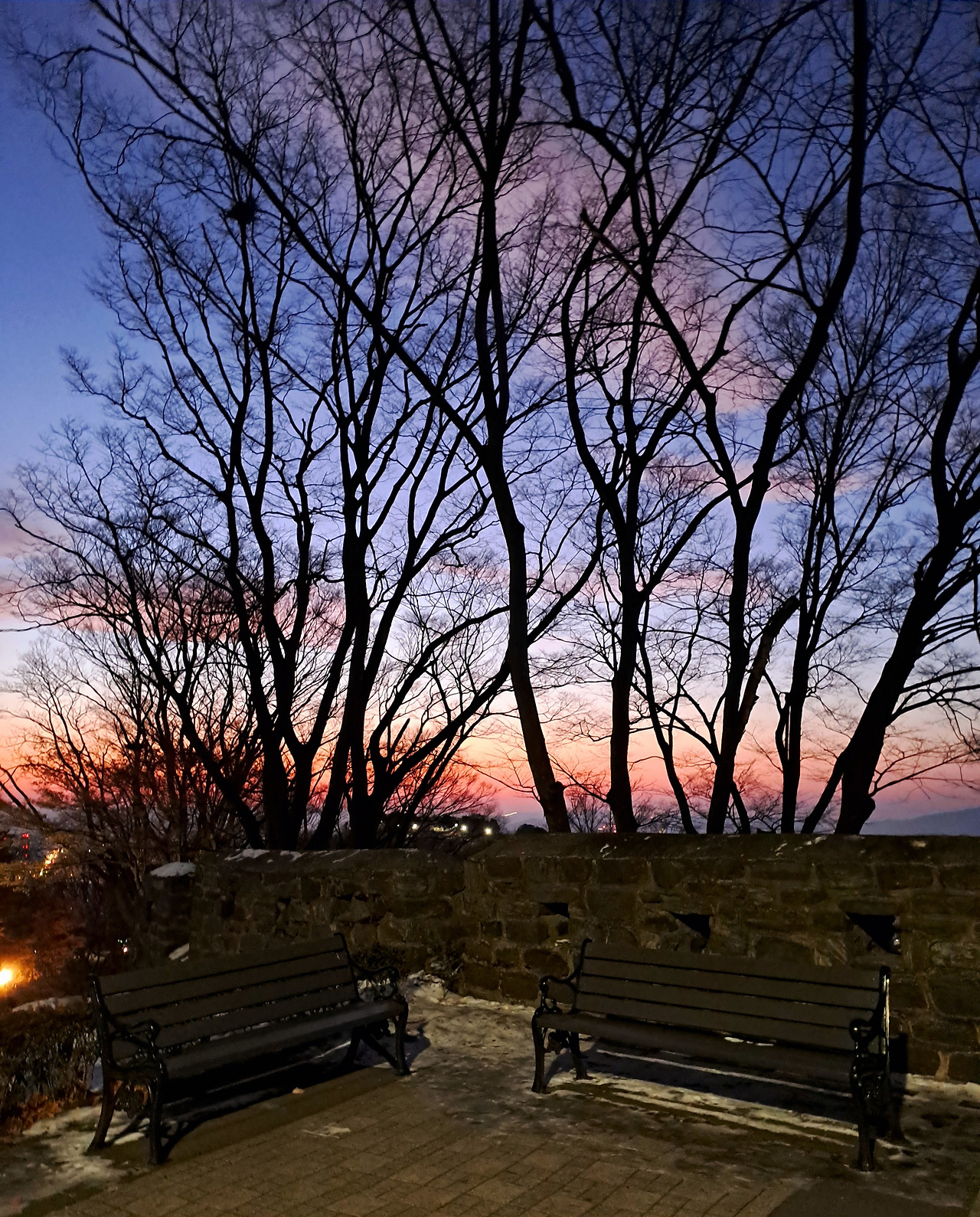 연말이나 연초가 되면 일출 명소로 알려진 곳에는 발디딜 틈이 없을 정도로 사람들이 몰려든다. 나 역시 올해 1월 1일에는 얼결에 일출까지 보긴 했지만 해는 매일 뜨는 거잖아? 게다가 일출을 보겠다고 계획을 세우면 흐릴 수도 있고 해뜨는 지점에 구름이 낄 수도 있는데 반해, 터덜터덜 갔다가 일출까지 덤으로 보면 뭔가 횡재를 한 기분이 드는 데 바로 그 날이 그랬다. 헬스클럽 휴일 + 여전히 새벽기상 + 몸 상태 OK + 무계획의 날, 아무 생각없이 휘리릭 가는 곳이 바로 남산이다. 가방은 늘 '레디고' 상태이므로 거기에 물병 하나 꽂아가면 된다.
