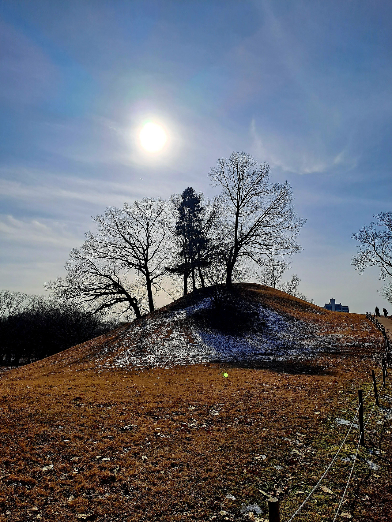 오래 전 교과서에서 본 적이 있고 자주 들어본 적도 있고 올림픽 공원에 간 적은 있으나 워낙 넓은 장소인데다 한여름 뙤약볕에 가는 바람에 앞쪽에서만 깔짝깔짝 대다가 그냥 돌아왔으므로 그곳이 몽촌토성인지 아닌지 조차 알 수 없었다. 길찾기 앱을 봐도 대체 어느 방향으로 들어가야 할 지 애매할 지경이므로, 일단 일출 명소 중 하나인 몽촌토성 망월봉에 가보기로 했다. 지하철 8호선 몽촌토성역 1번 출구로 나가면 된다.