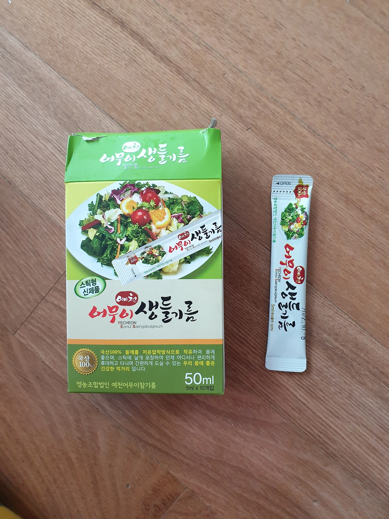 들기름은 저온압착 생들기름 PTP로 된 것을 가지고 다니면서 각종 나물과 비빔밥을 만들어 먹을 때 바로 뿌려서 드시면 된다