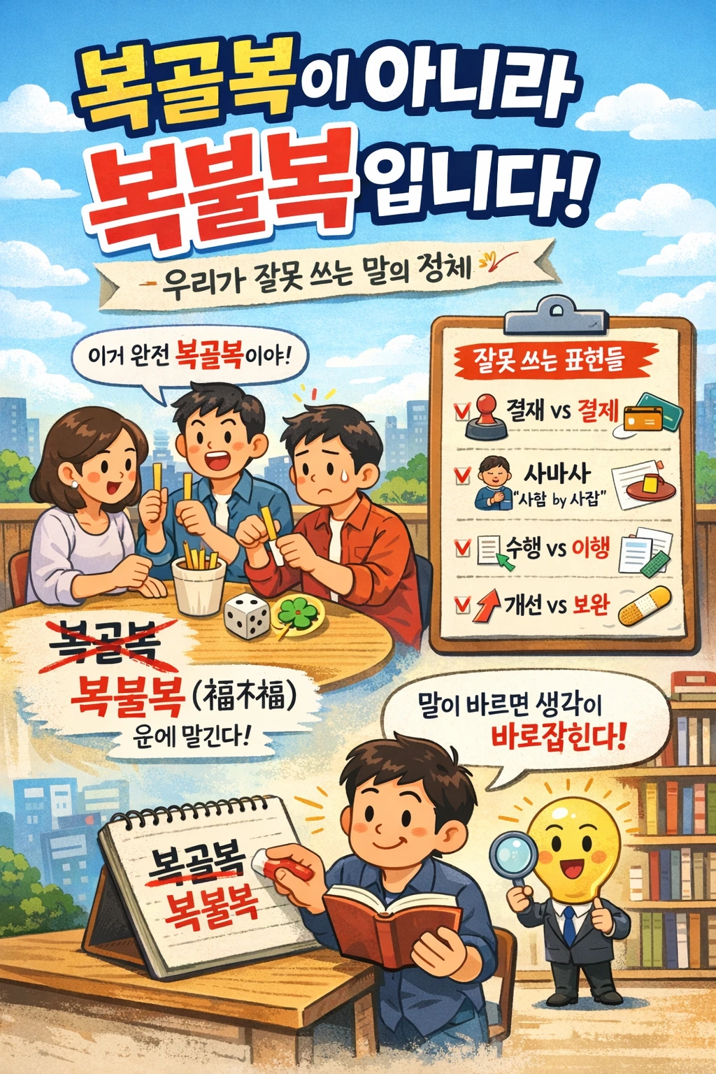 일상 대화 속에서 자주 들리는 말이 있습니다. 바로 “이건 복골복입니다”라는 표현입니다. 회식 자리에서든, 자리 배치나 순번을 정할 때든, 결과를 운에 맡길 수밖에 없는 상황이면 어김없이 등장합니다. 너무 흔하게 쓰이다 보니 틀린 말이라는 사실조차 의식되지 않는 경우가 많습니다.