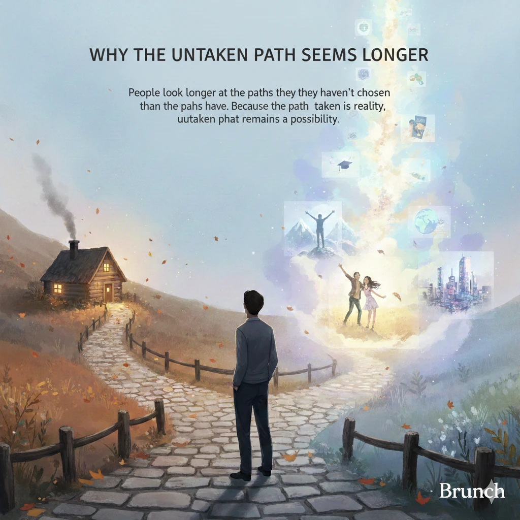가지 않은 길에 대한 미련은 실제 경험이 아니라 상상에서 만들어집니다.