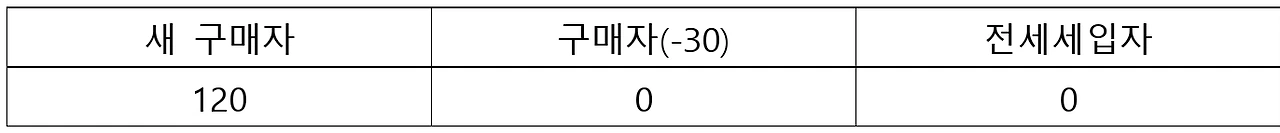 기존 구매자는 30의 빚을 지고 있는 상황이다. 2년 뒤, 집값이 120이 되었고 집을 새 구매자에게 팔았다고 가정해 보자.