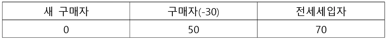 세입자는 2년 동안 30을 손해 보게 된 것이다.