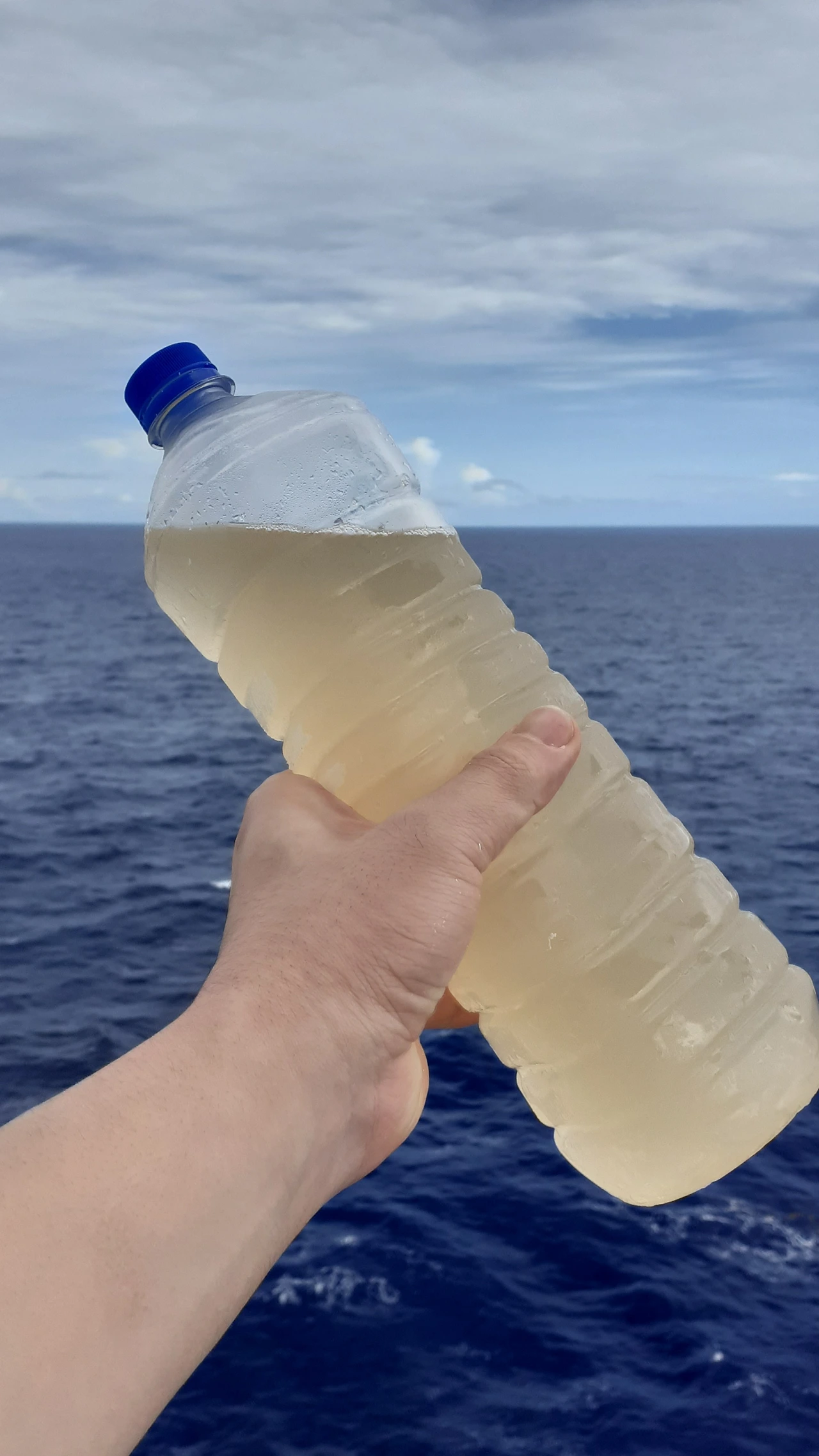 2주일이 지나면 모든 것은 뒤섞여, 알록달록하던 사과의 모양은 온데간데없이 녹아버린 펄프만 남게 된다. 효모에 의해 발효부패가 진행된 것이다.