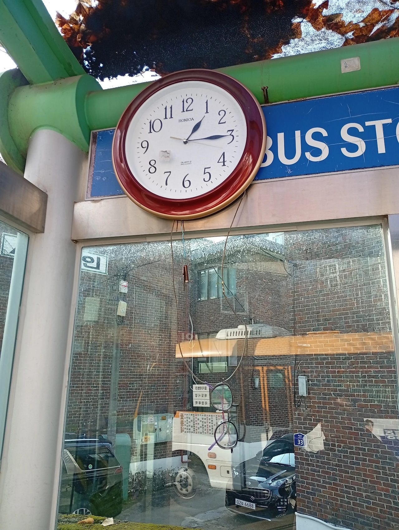 꽃동네 버스정류장의 시계는 아직 멈추지 않았다.