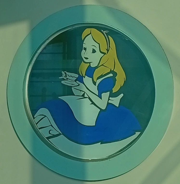 폐 어린이집의 눈먼 앨리스 스티커가 조금 으스스한 분위기를 자아냈다.