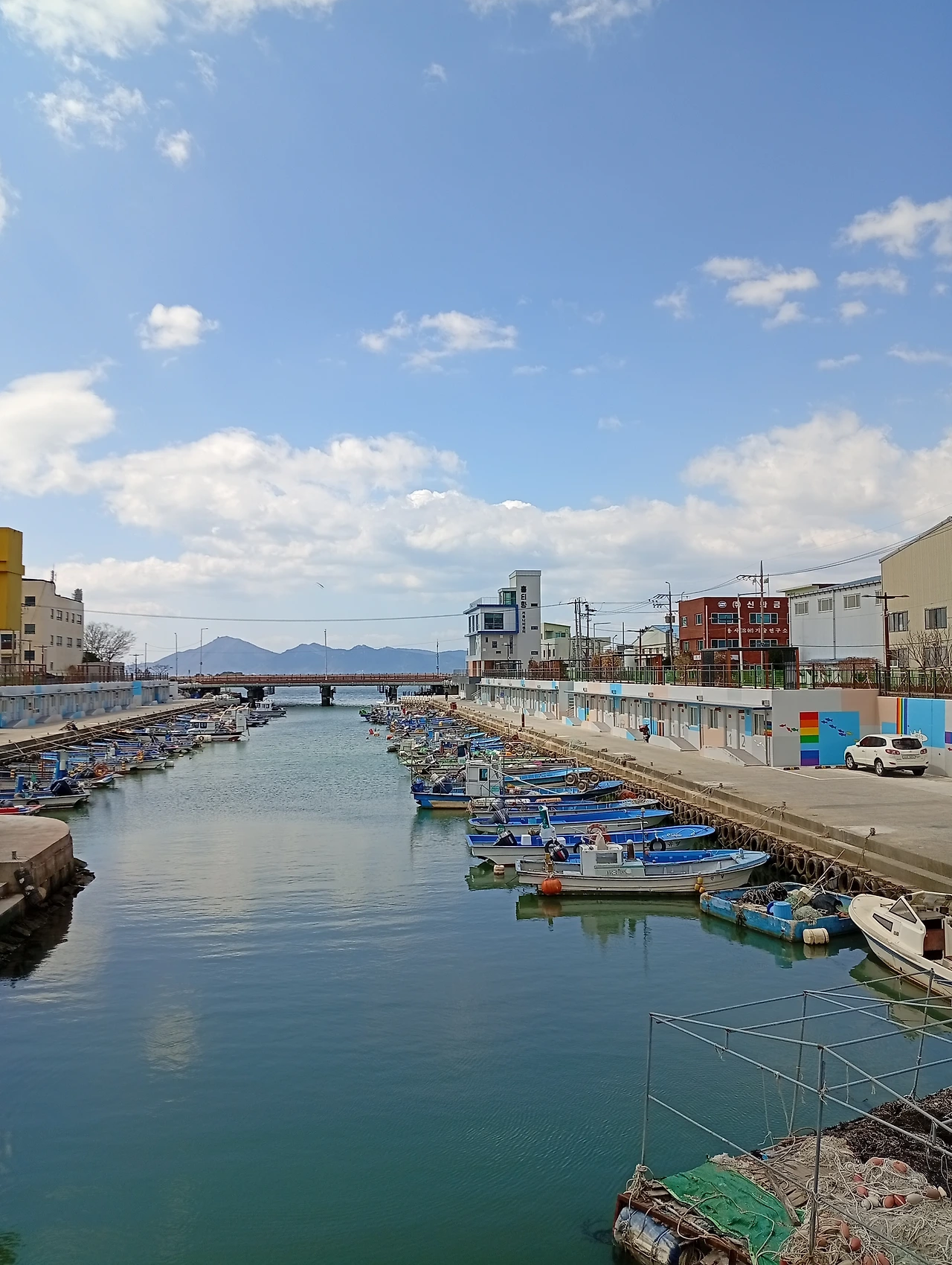 그 틈을 조금 더 걸어가면 갑자기 시야가 트이며 바다가 열린다. 그리고 그 앞에 거짓말처럼 알록달록한 포구가 나타난다.