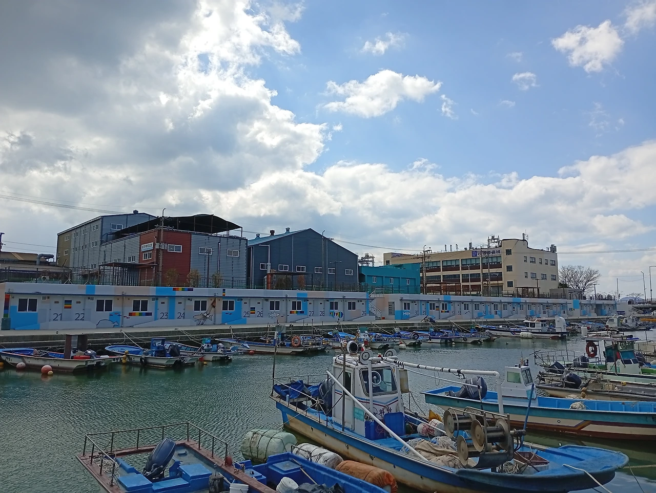 포구 바로 뒤에는 무채색의 공장 담장이 버티고 서 있고, 금속성의 절단음이 울려 퍼진다.