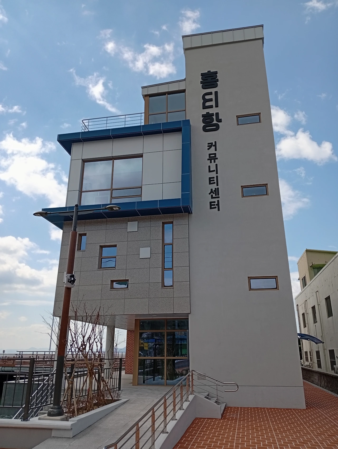 사람의 기척조차 드문 이곳에, 포구의 규모를 한참 상회하는 세련된 커뮤니티 센터와 전망 구조물들이 들어서 있다.