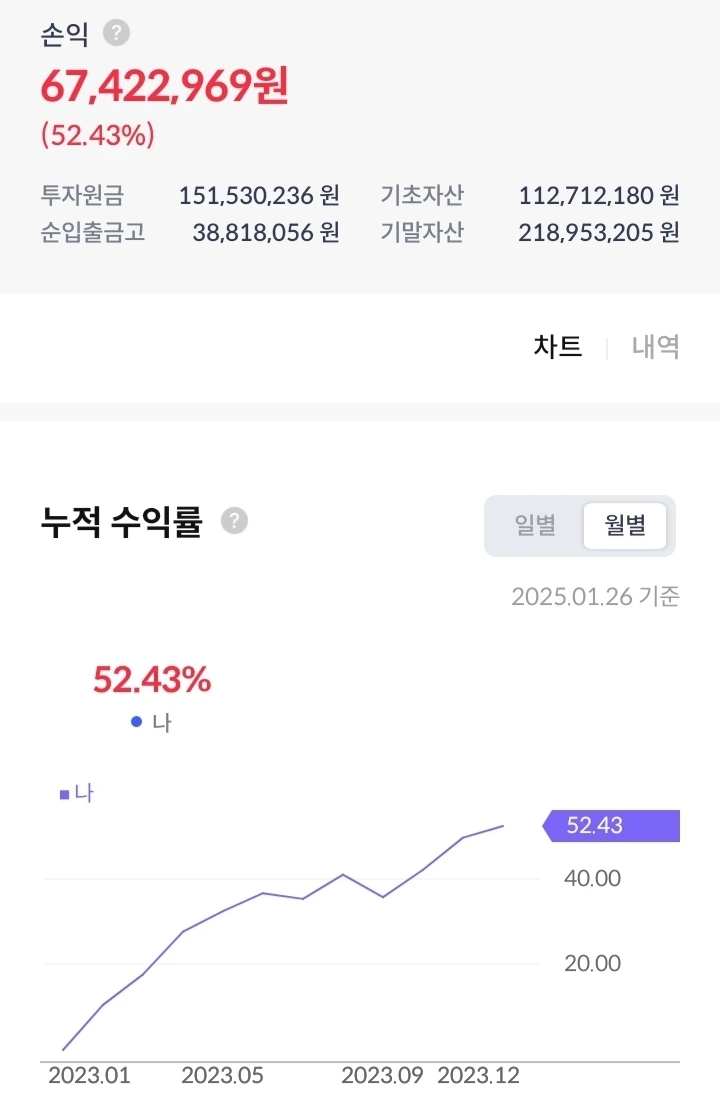 주식 2억 1천에 현금 6천을 가지게 되었습니다.