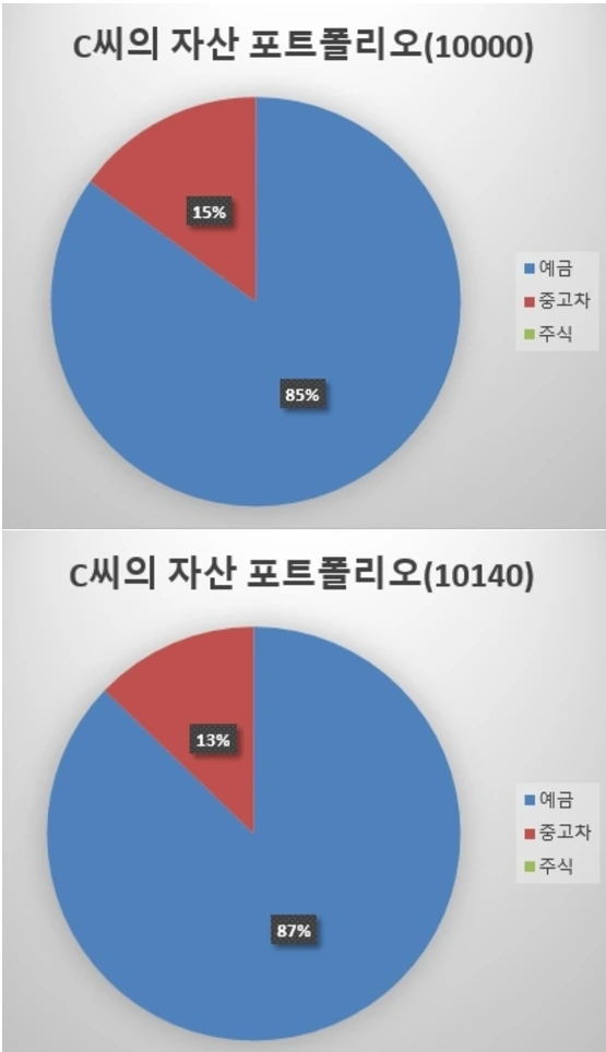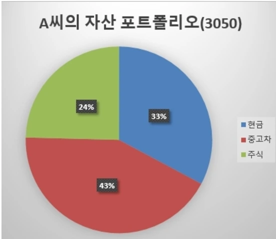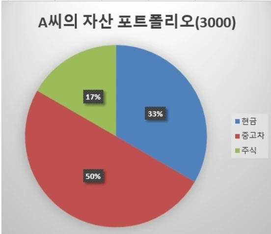 이렇게 보면, A 씨는 자신의 자산의 50%를 중고차에 투자한 사람이 된다.