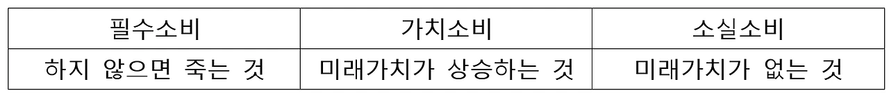 아무런 가치가 없는 소비이다. 많은 사람들이 가치소비와 소실소비를 혼동한다.