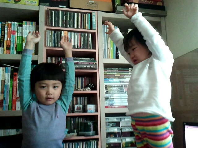 여섯 살 꼬마인 아들이 거실에서 외칩니다.