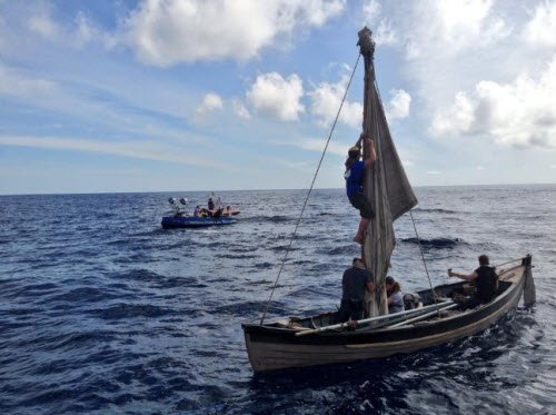 내화의 줄거리는 이렇다. 일등 항해사에 오웬 체이스(크리스 헴스워스 분)와 선장 조지 폴라드(벤자민 워커 분)는 서로 갈등하며 하루라도 빨리 헤어지기 위해 단기간에 목표량을 채우고 고향으로 돌아가려 했다. 하지만 향유고래가 좀처럼 보이지 않자, 그들은 더 먼 곳에 있는 향유고래 서식지까지 위험을 무릅쓰고 항해한다. 그리고 마침내 고래 떼를 만나게 되지만, 남미 에콰도르에서 2,800㎞ 떨어진 태평양에서 거대한 흰고래에 받혀 침몰하고 만다. 겨우 살아남은 조지 폴라드와 선원들은 세 척의 보트에 나눠 타고 귀향길에 올랐다. 그러나 예상과 달리 항해가 길어졌고, 극도의 굶주림과 갈증으로 한 사람씩 죽어가기 시작했다. 천신만고 끝에 결국 몇 명만이 가까스로 살아 돌아온다.